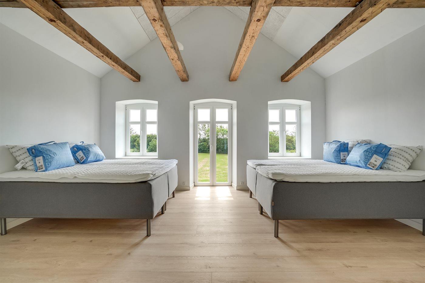 Der er i alt 12 soveværelser. Sovepladserne fordeler sig på: 30 sovepladser i dobbeltsenge. 2 sovepladser i sovesofa (dobbelt). Derudover er der 2 stk. barnesenge.