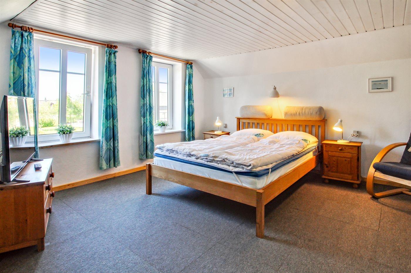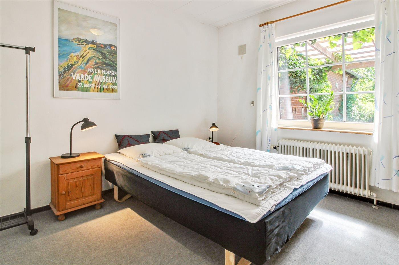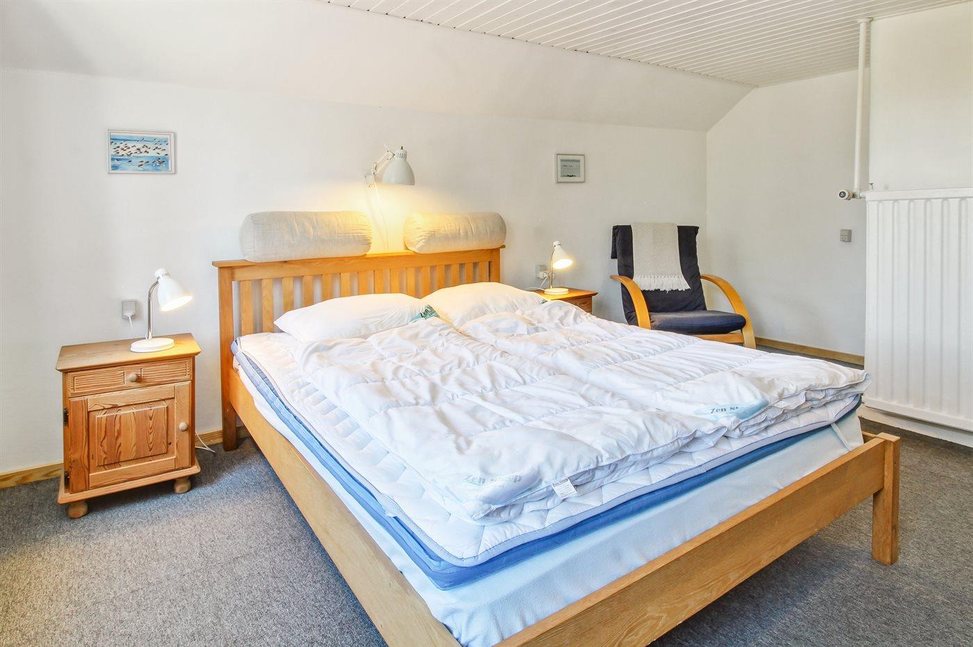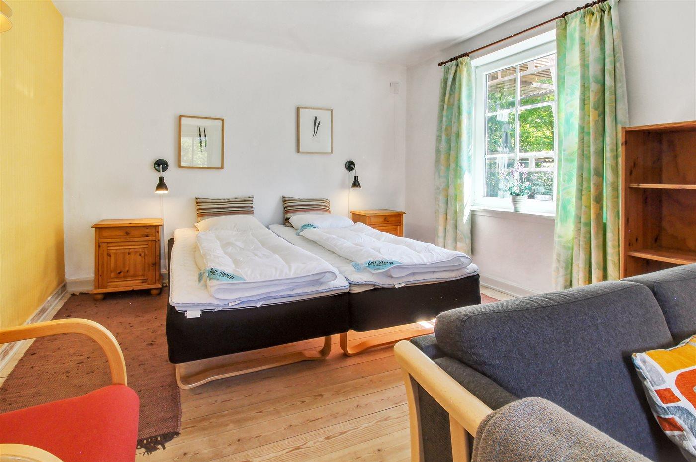 Der er i alt 5 soveværelser. Sovepladserne fordeler sig på: 10 sovepladser i dobbeltsenge. 1 soveplads i enkeltseng. 2 sovepladser i sovesofa (dobbelt). 1 soveplads i alkove. 1 af disse sovepladser befinder sig i stuen. Derudover er der 2 stk. barnesenge.
