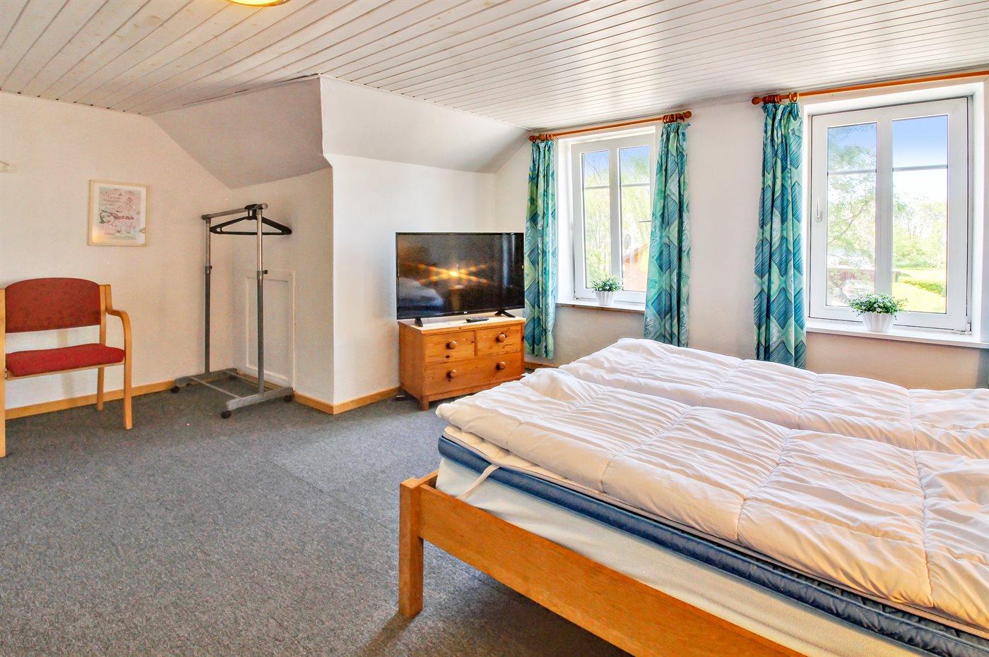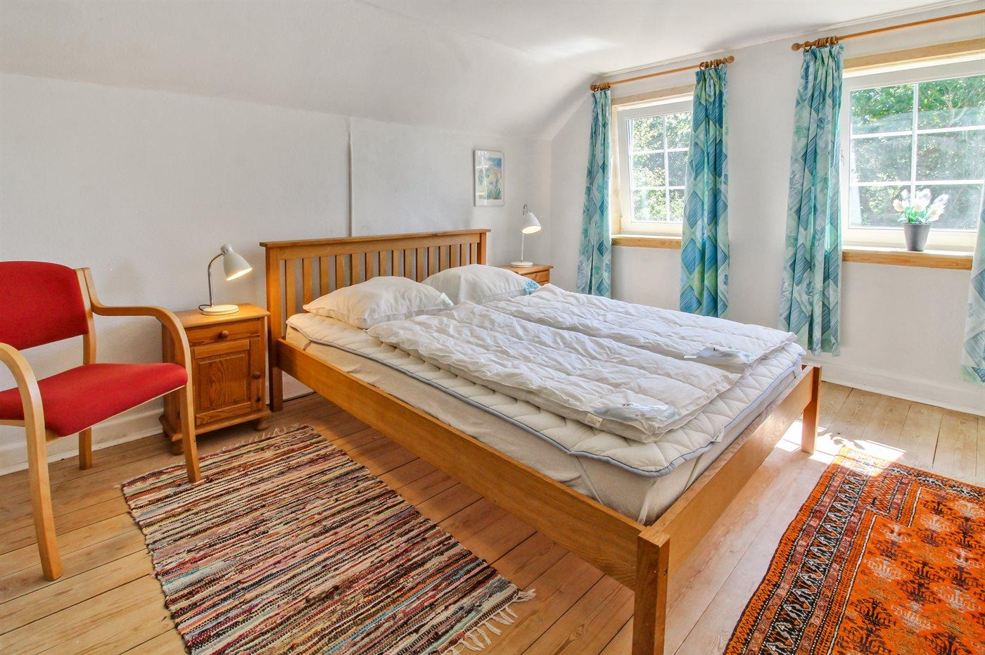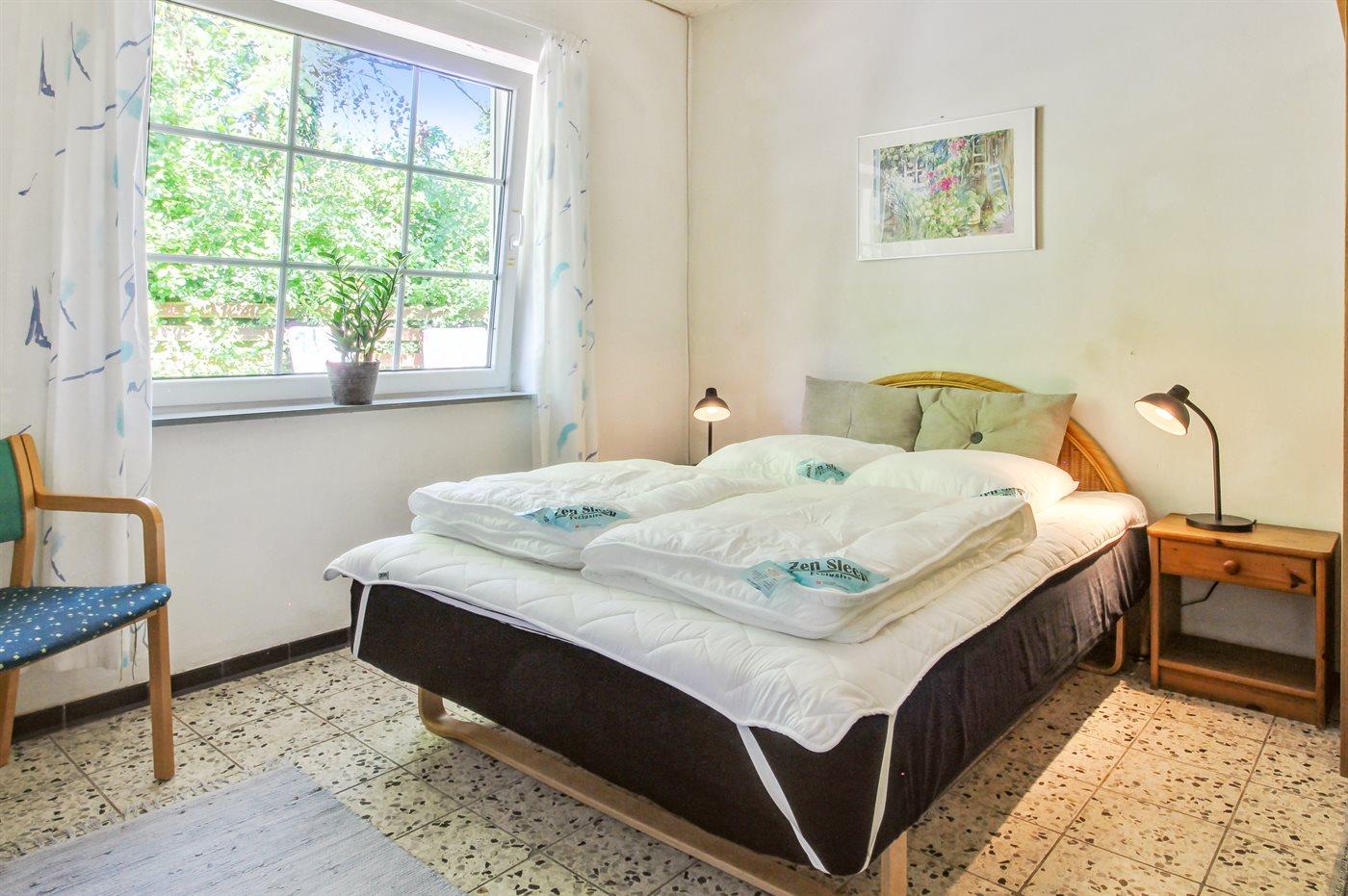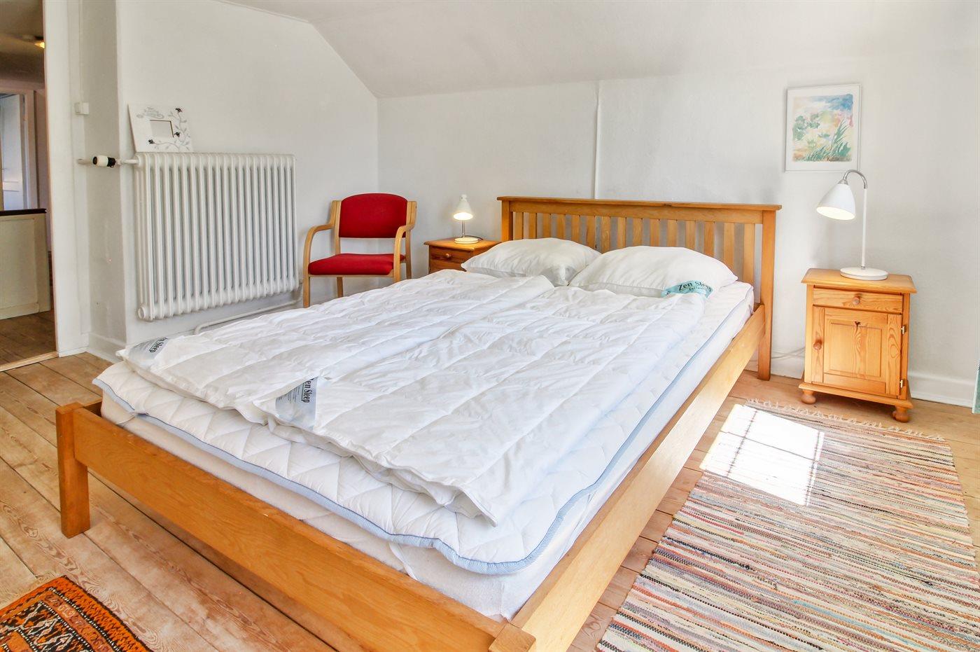 Der er i alt 5 soveværelser. Sovepladserne fordeler sig på: 10 sovepladser i dobbeltsenge. 1 soveplads i enkeltseng. 2 sovepladser i sovesofa (dobbelt). 1 soveplads i alkove. 1 af disse sovepladser befinder sig i stuen. Derudover er der 2 stk. barnesenge.