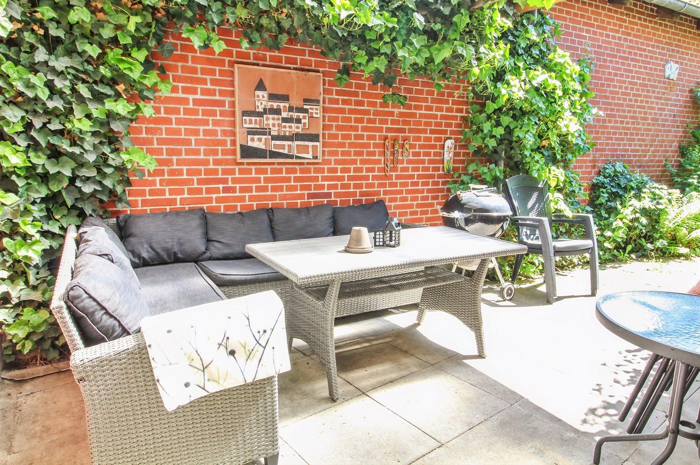 På terrassen er der også mulighed for at nyde en kop kaffe, tilberede dagens måltid på grillen eller bare nyde hinandens nærvær.