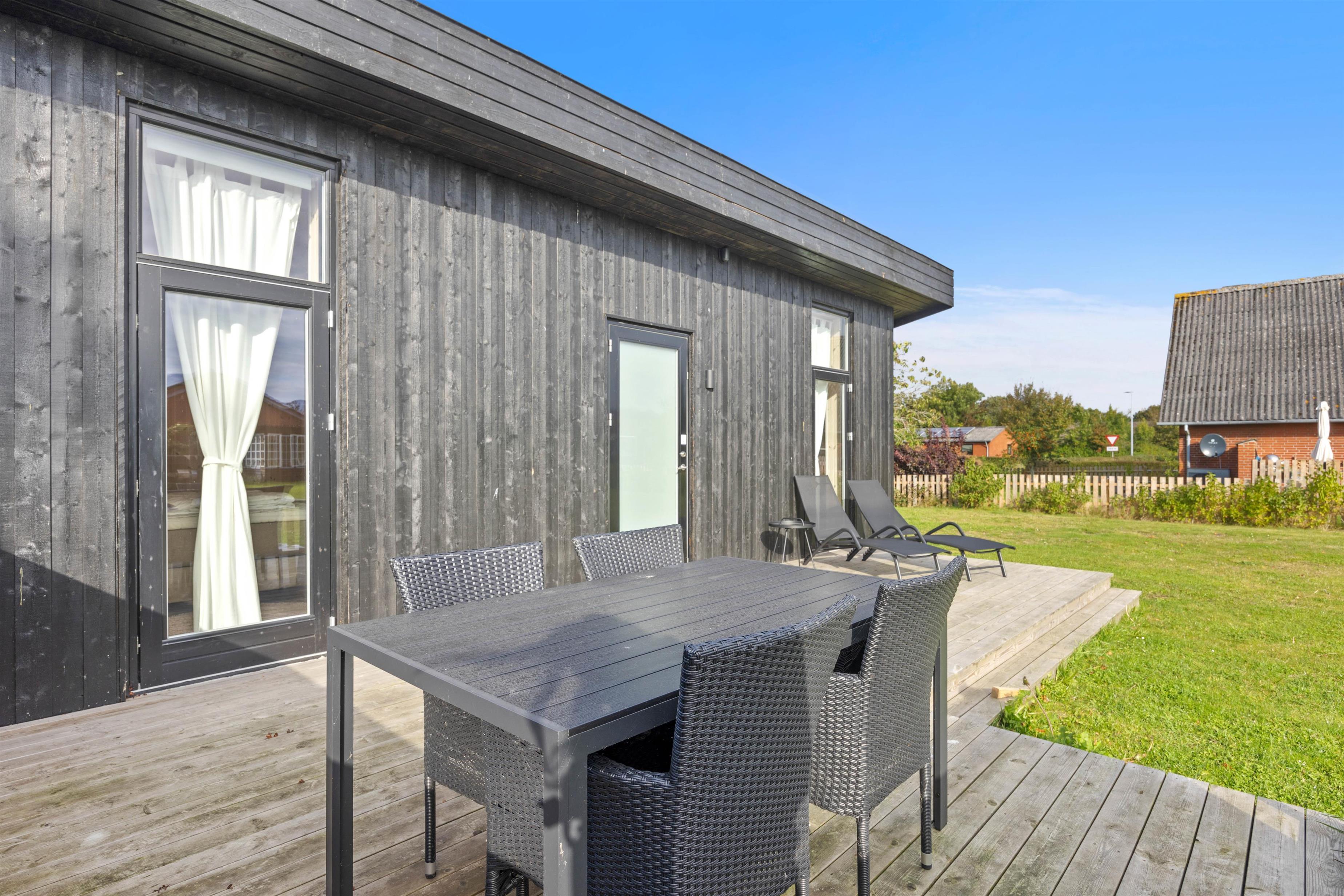 Udenfor kan I slappe af på den afskærmede terrasse med havemøbler og liggestole. Det perfekte sted til at nyde morgenkaffen eller et godt glas vin, mens solen går ned ude i horisonten. Imens I slapper af på terrassen, kan hunden løbe rundt og lege på den skønne naturgrund. I har også en grill til rådighed, så I kan tilberede en lækker grillmiddag under åben himmel.