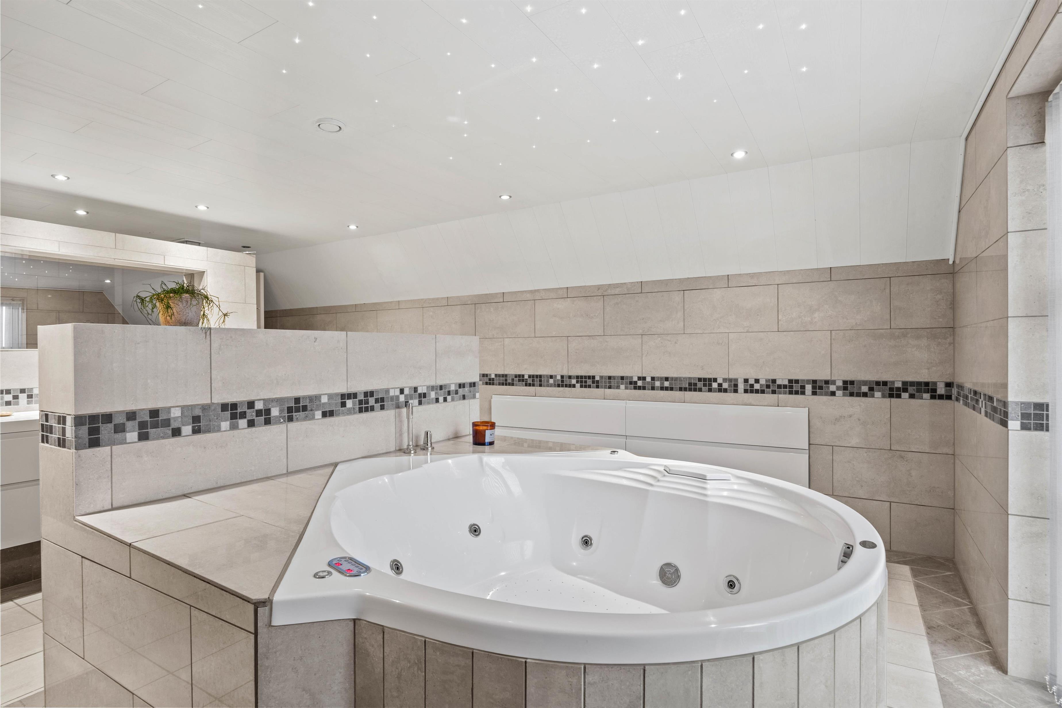 Der er 4 moderne badeværelser med gulvvarme, som sikrer god komfort – også når I er mange samlet.