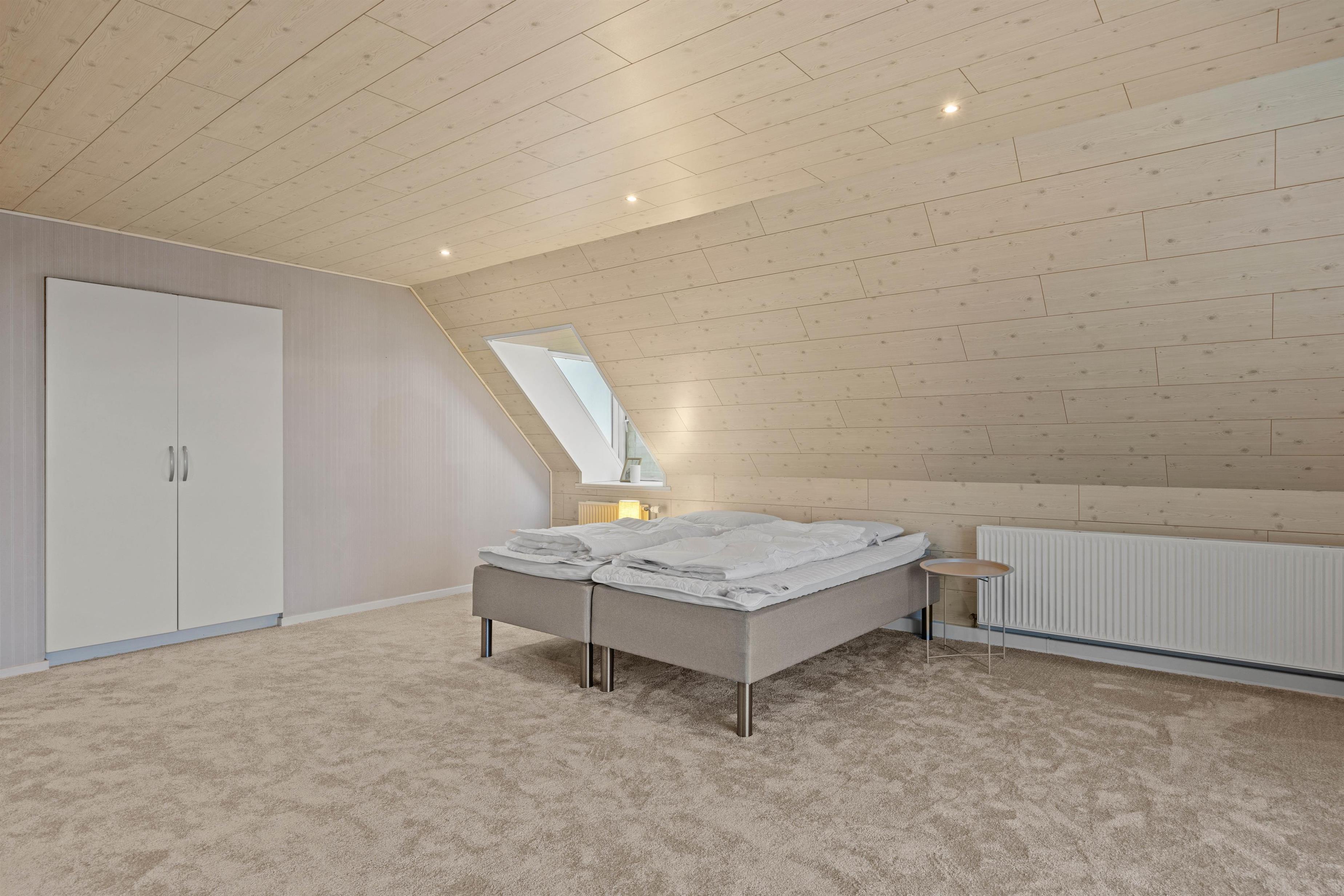 Sommerhuset er hele 505 m² og har plads til op til 12 personer fordelt på 6 rummelige soverum, alle med dobbeltsenge. Ét af soveværelserne er endda udstyret med walk-in closet, hvilket giver ekstra komfort og opbevaringsplads. Sommerhuset er ideel til store familier, flere generationer eller vennegrupper.