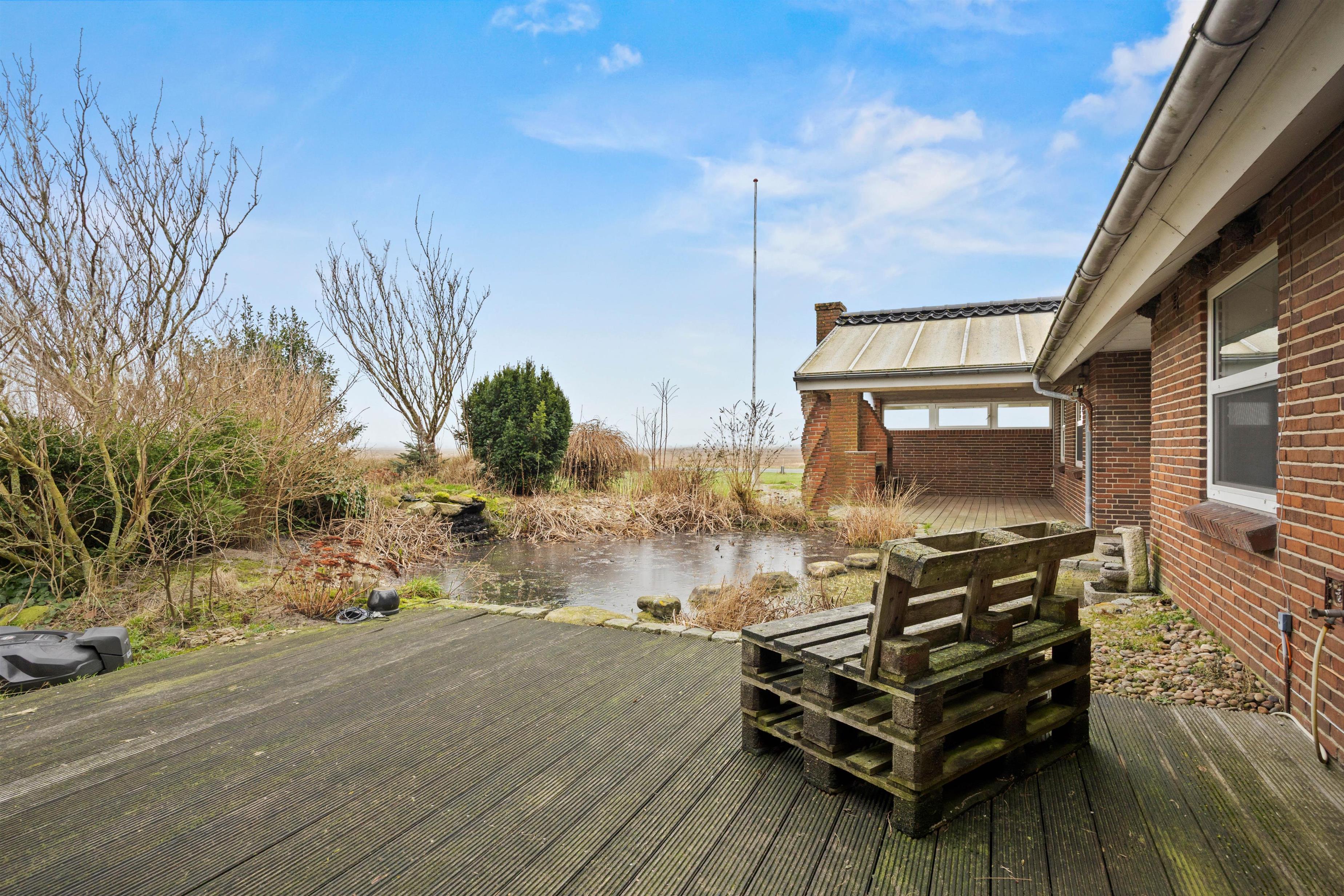 På den 2000 m² store grund er der rig mulighed for udendørs aktiviteter, leg og afslapning. Den åbne og overdækkede terrasse ligger smukt ved en lille have-sø, som bidrager til ro og hyggelige omgivelser. Terrassen er perfekt til grillaftener, og havemøblerne giver gode rammer for at nyde solen og roen.