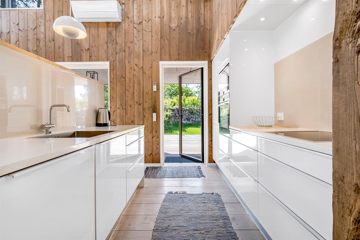 Køkkenet er udstyret med 1 køleskab. Der er 4 induktionskogeplader, varmluftovn, mikrobølgeovn samt opvaskemaskine.