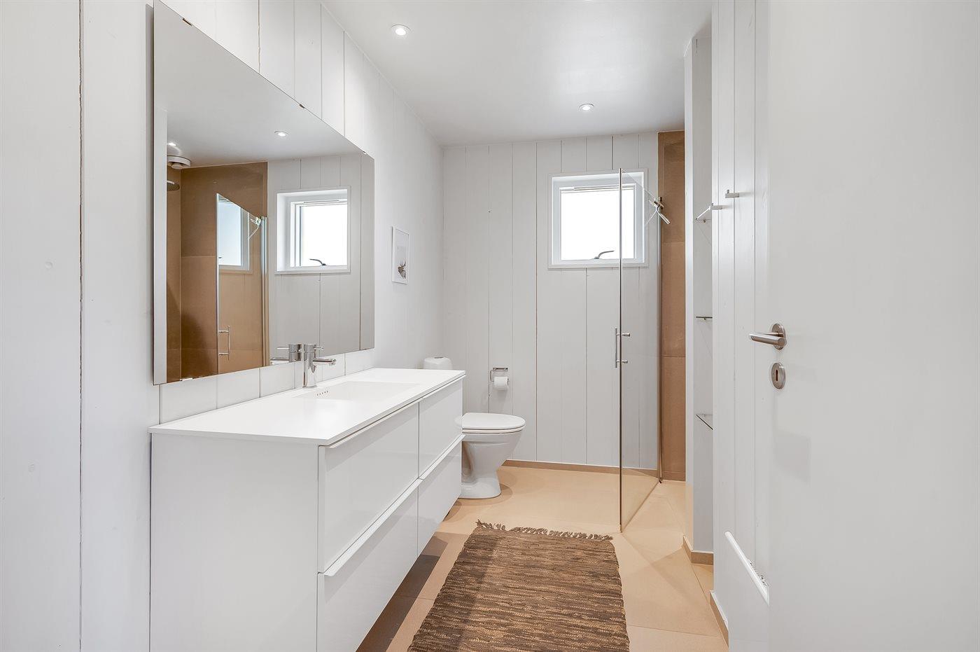 Der er 1 badeværelse med bruseniche og 1 toilet.. Der er gulvvarme på 1 badeværelse.