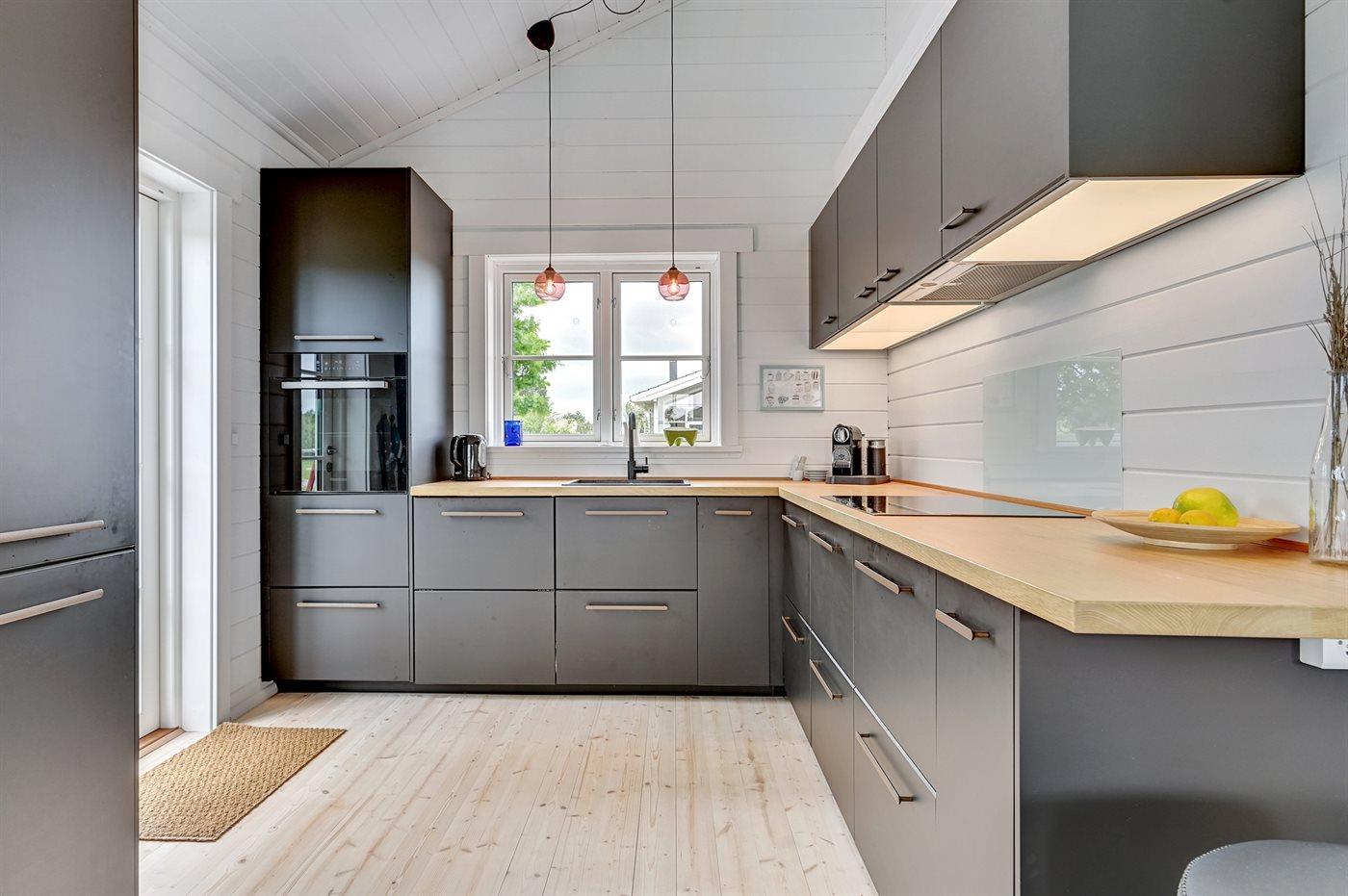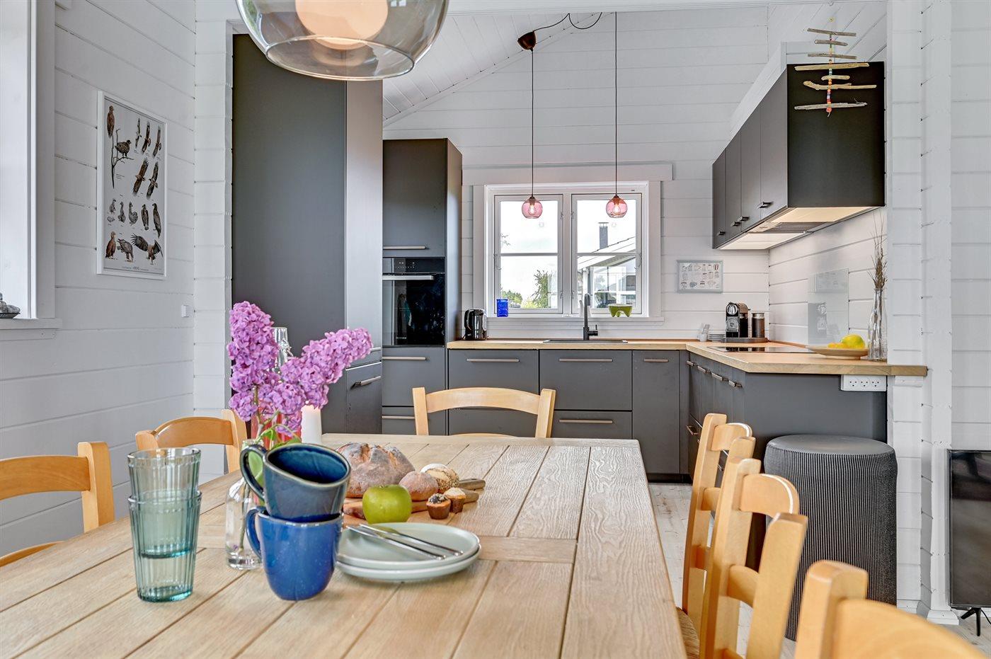 Køkkenet er udstyret med 1 køleskab. Der er 4 induktionskogeplader, varmluftovn, mikrobølgeovn samt opvaskemaskine.