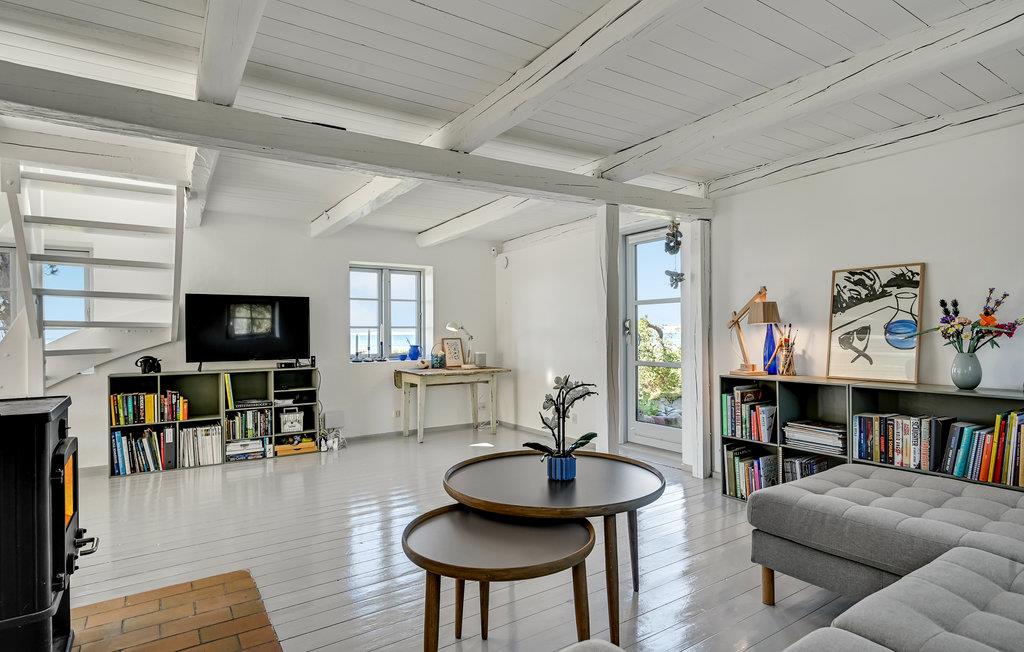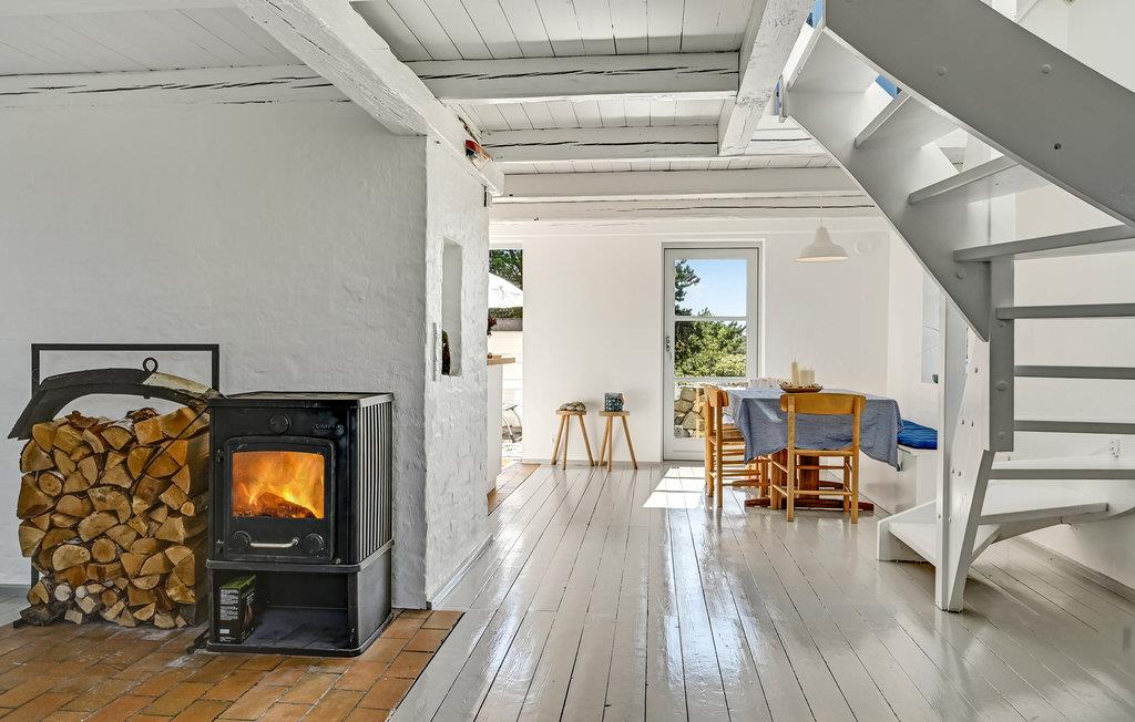 Den åbne planløsning i stueetagen giver jer et rum, hvor I hver især kan sysle med jeres egne interesser, mens I fortsat er samlet. Børnene kan lege, og I kan lave mad, læse bøger eller sætte jer og kigge på vandet, mens I nyder varmen fra brændeovnen.