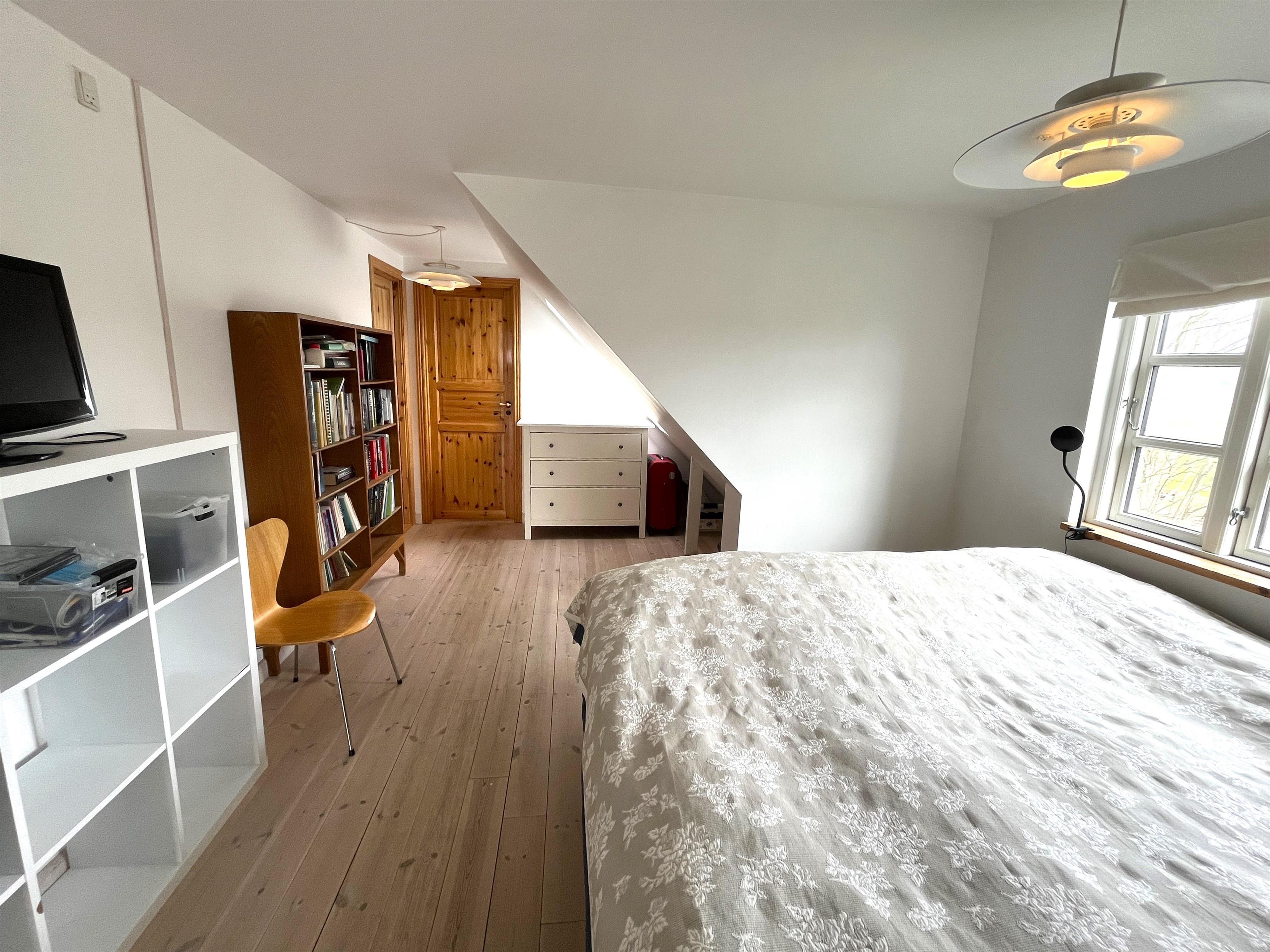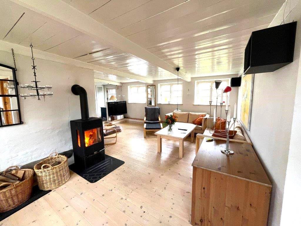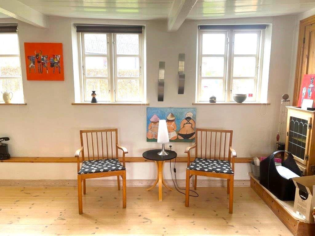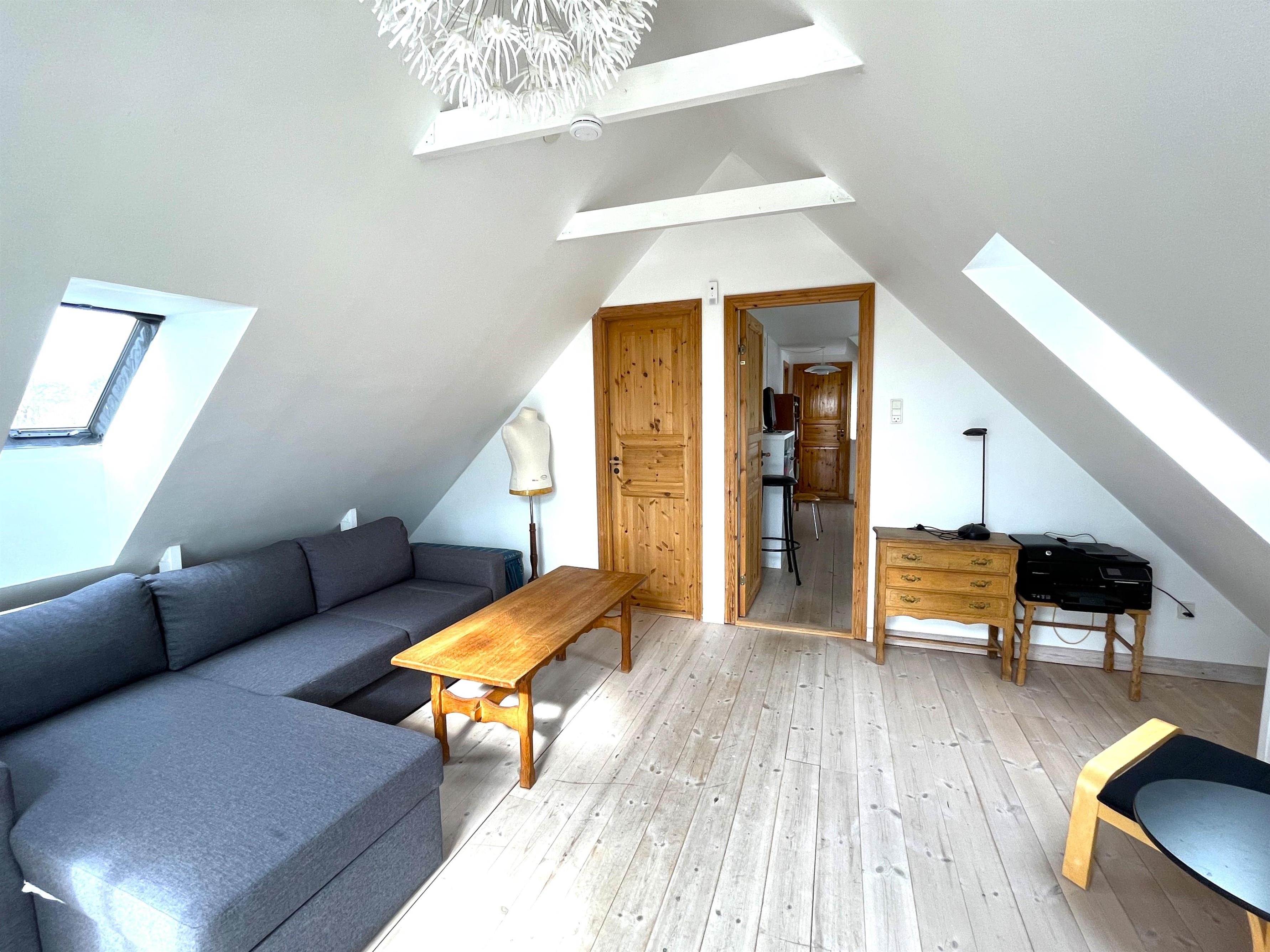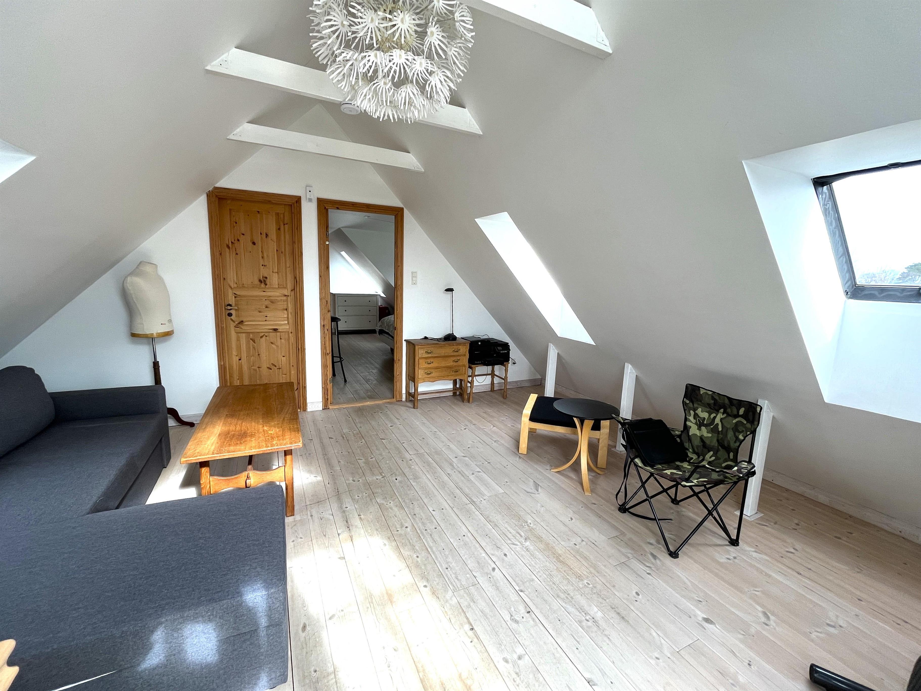 På førstesalen venter endnu en dejlig opholdsstue – perfekt til ro og fordybelse. Her ligger også to gode soveværelser, begge med dobbeltsenge, samt endnu et badeværelse med brusekabine, så alle har god plads og komfort.