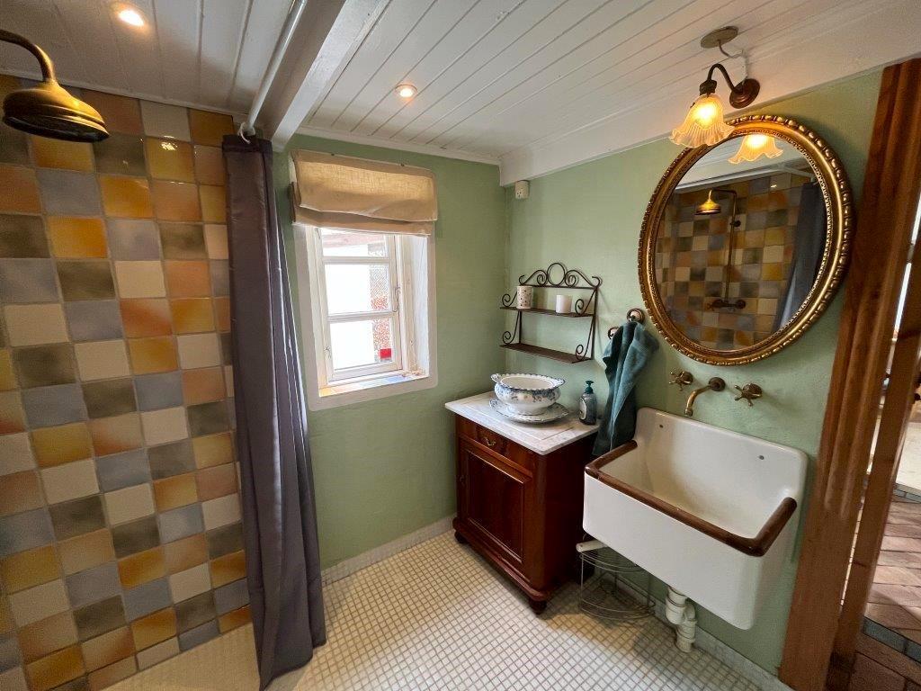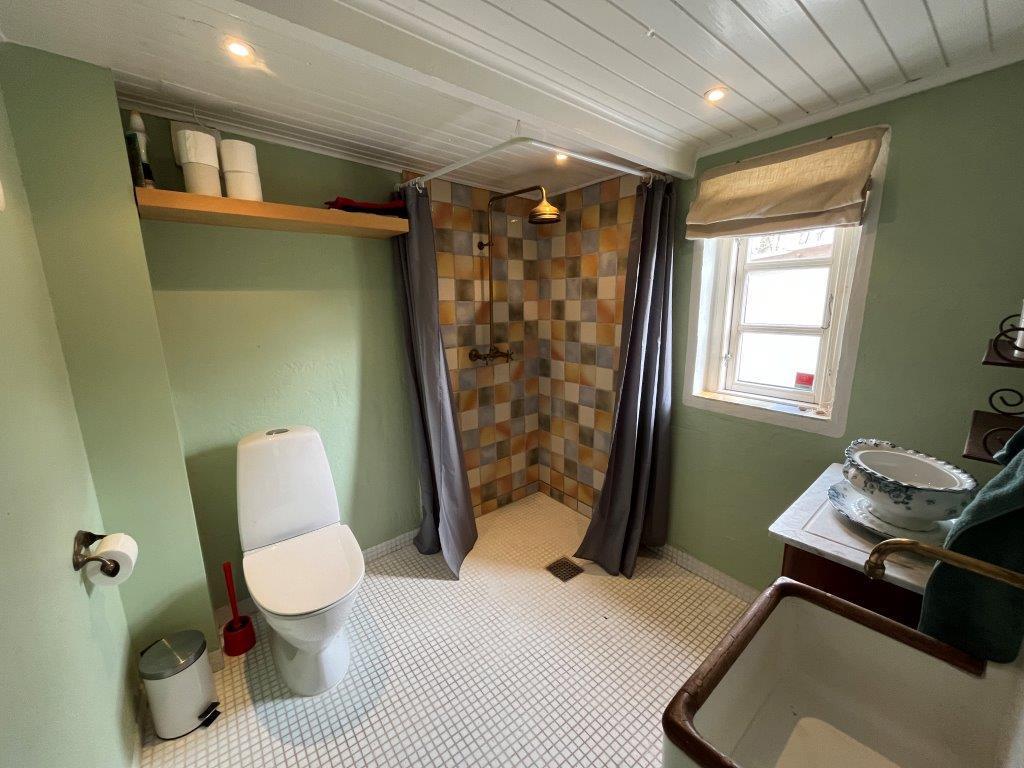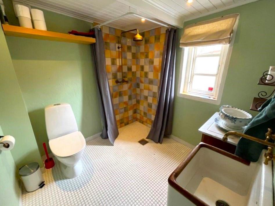 I stueplan finder du også et soveværelse med dobbeltseng samt et badeværelse med brusekabine.