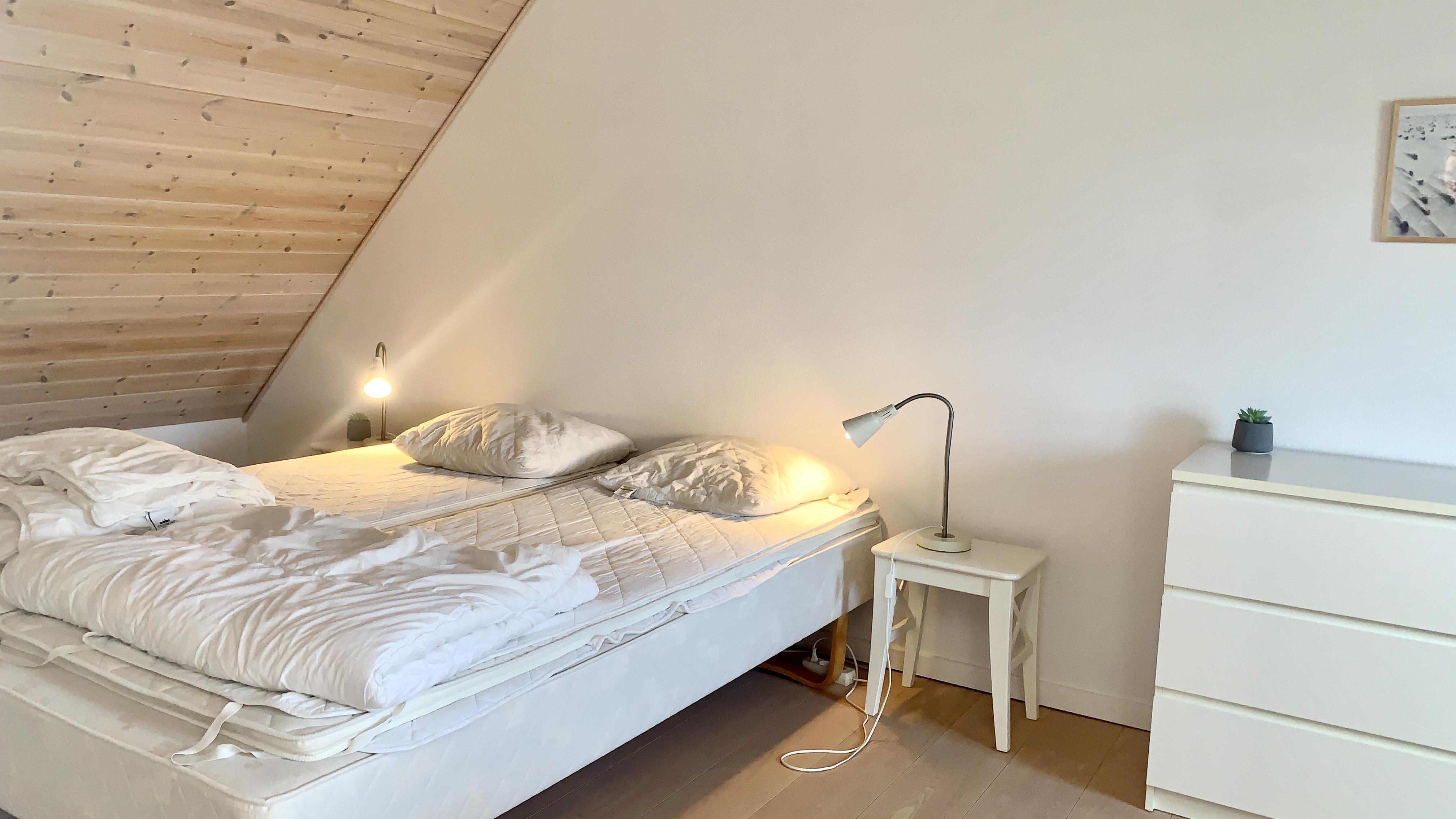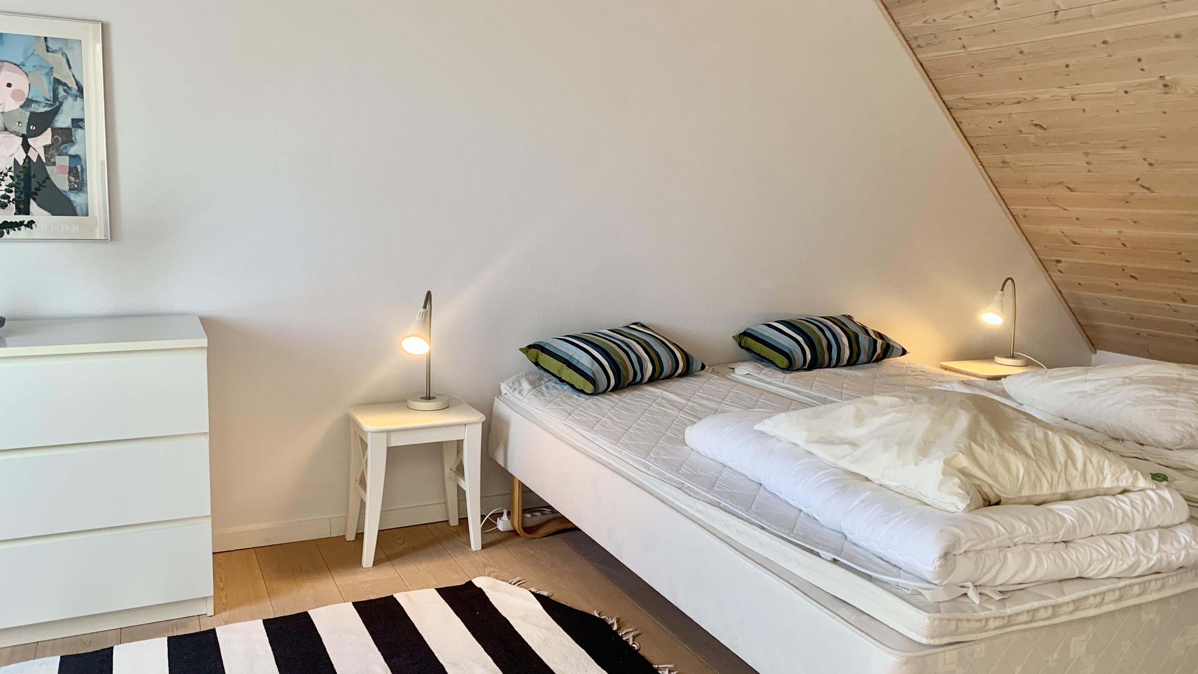 På første sal er der to soveværelser – et med dobbeltseng og et med to enkeltsenge – samt et ekstra toilet. Huset er ideelt til op til 4 personer og giver komfortabel plads til både afslapning og samvær.