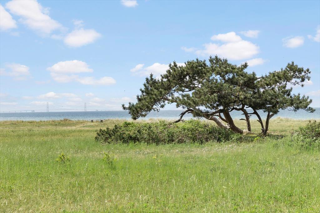 Huset har en velbevaret dejlig naturgrund på 1161 m2 beliggende ved Bildsøplantagen, som har høje smukke fyrretræer, og hvorfra der er kig til vandet. Mærk strandstemningen fra terrassen, hvor I kan se Musholm bugt. Ved enden af vejen er der en sti ned til stranden. Ved huset er der havemøbler og grill