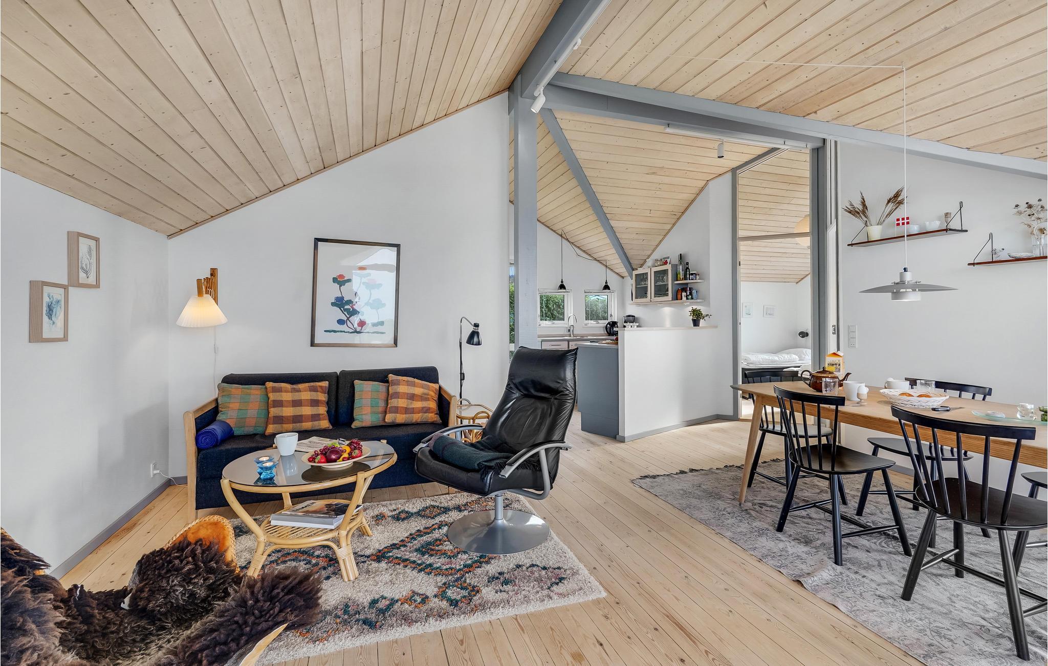 Her kan I virkelig nyde vandet og få sand mellem tæerne - tag håndklædet over armen og gå direkte ud I bølgen blå. Huset indeholder åbent køkken i kombination med stue med spiseplads, fra stuen udgang til skøn overdækket terrasse hvor udsigten kan nydes i fulde drag. Selv når I sidder i sofaen, er der fuld panorama. Endvidere indeholder huset godt badeværelse med brus samt 2 gode værelser. I det hyggelige anneks finder I yderligere et soveværelse med soveplads (135x200 cm) samt forrum med vaskemaskine.