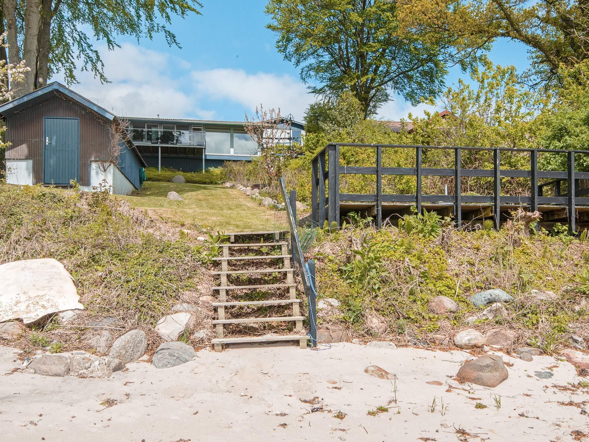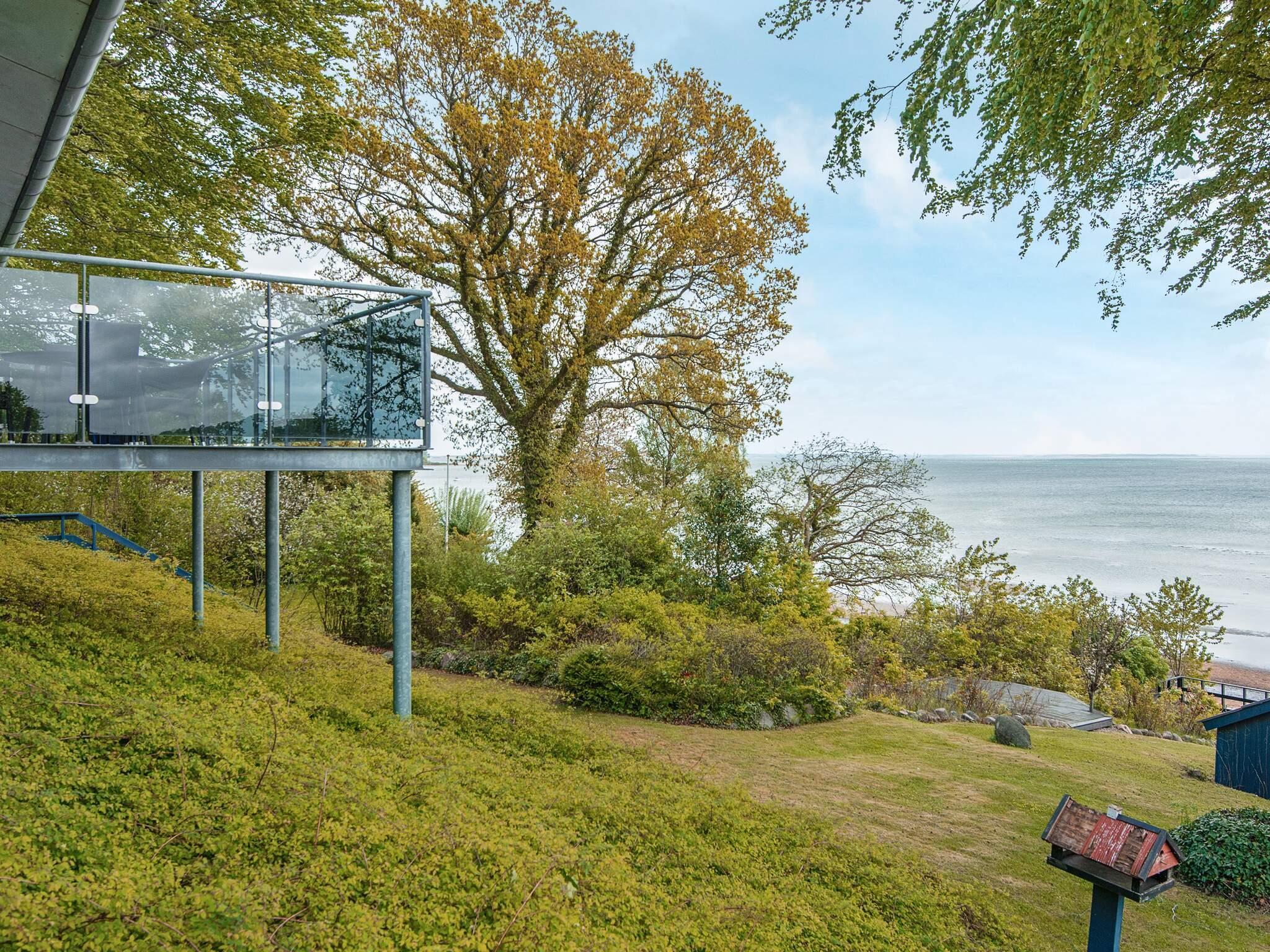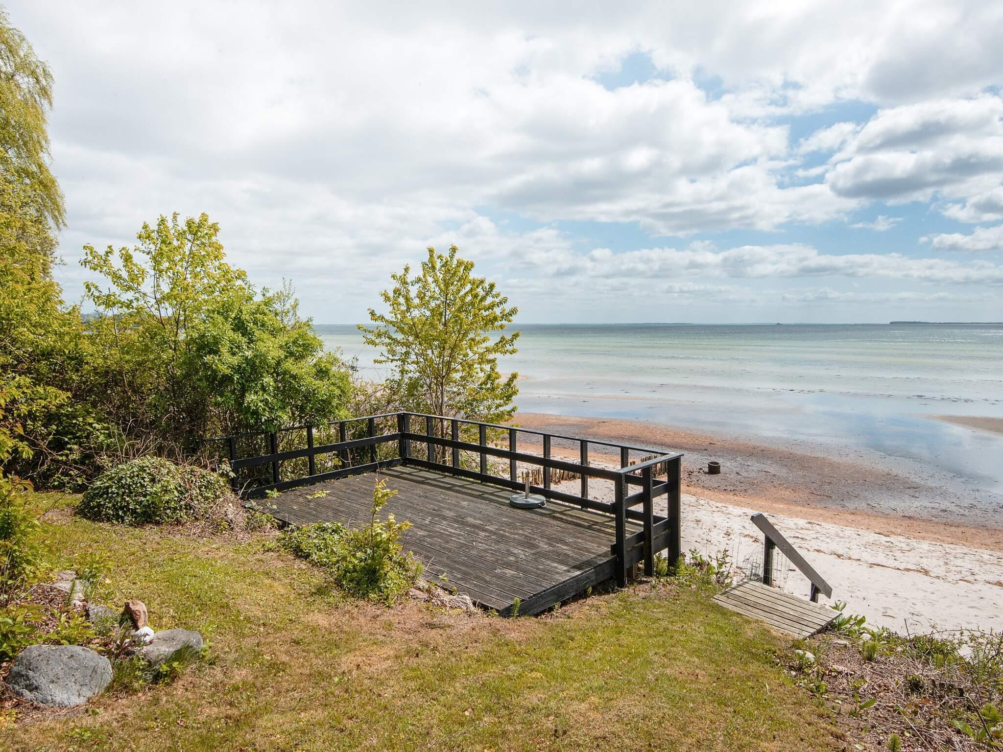 Dette rummelige feriehus ved Hejlsminde Strand ligger på en bjergskråning i første række til vandet og byder på en fantastisk panoramaudsigt og direkte adgang til en privat strand. Fra huset og dets anlagte terrasser kan du nyde helt uhindret udsigt over vandet og det omkringliggende landskab, hvilket gør det til et perfekt tilflugtssted for afslapning og kystliv.