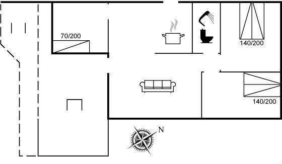 Der er i alt 3 soveværelser. Sovepladserne fordeler sig på: 4 sovepladser i dobbeltsenge. 1 soveplads i enkeltseng. Derudover er der 1 stk. barneseng.