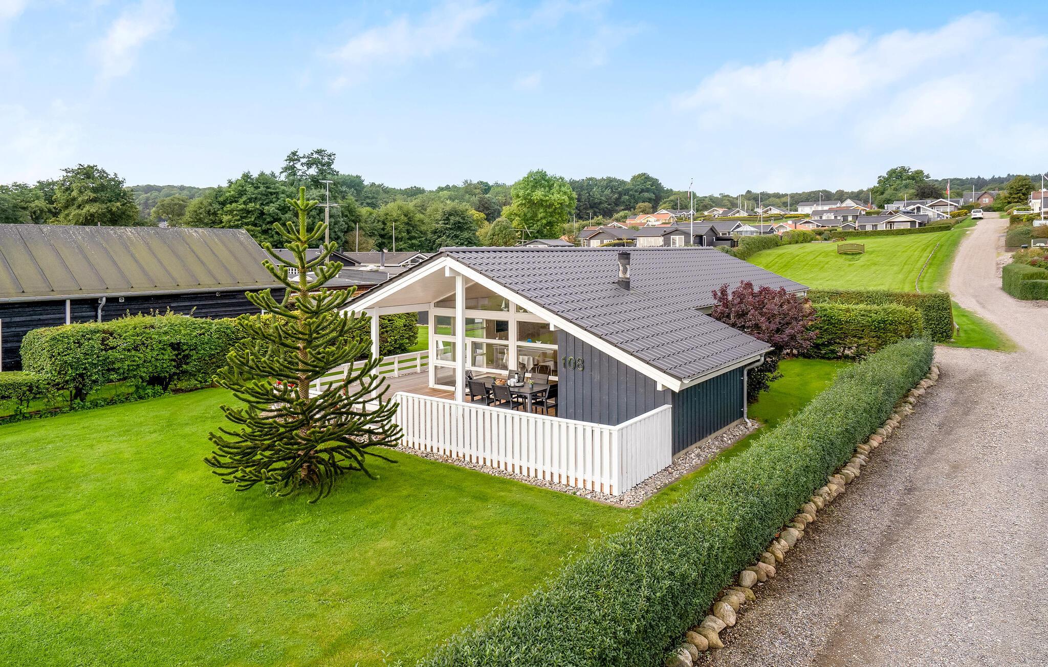 Dette skønne feriehus ligger i første række med betagende panoramaudsigt ud over Binderup. Selv inde fra stuen har I direkte udsigt over vandet. Huset er godt indrettet med alle fornødenheder. Giv jer selv en wellnessoplevelse i spaen og saunaen, efter en dejlig dag ved stranden. I kan udforske den skønne natur, tage på bytur i Kolding, med mange forretninger, kultur- og cafeliv. Besøg også Legoland og Givskud Løvepark, som ligger i fornuftig køre afstand.