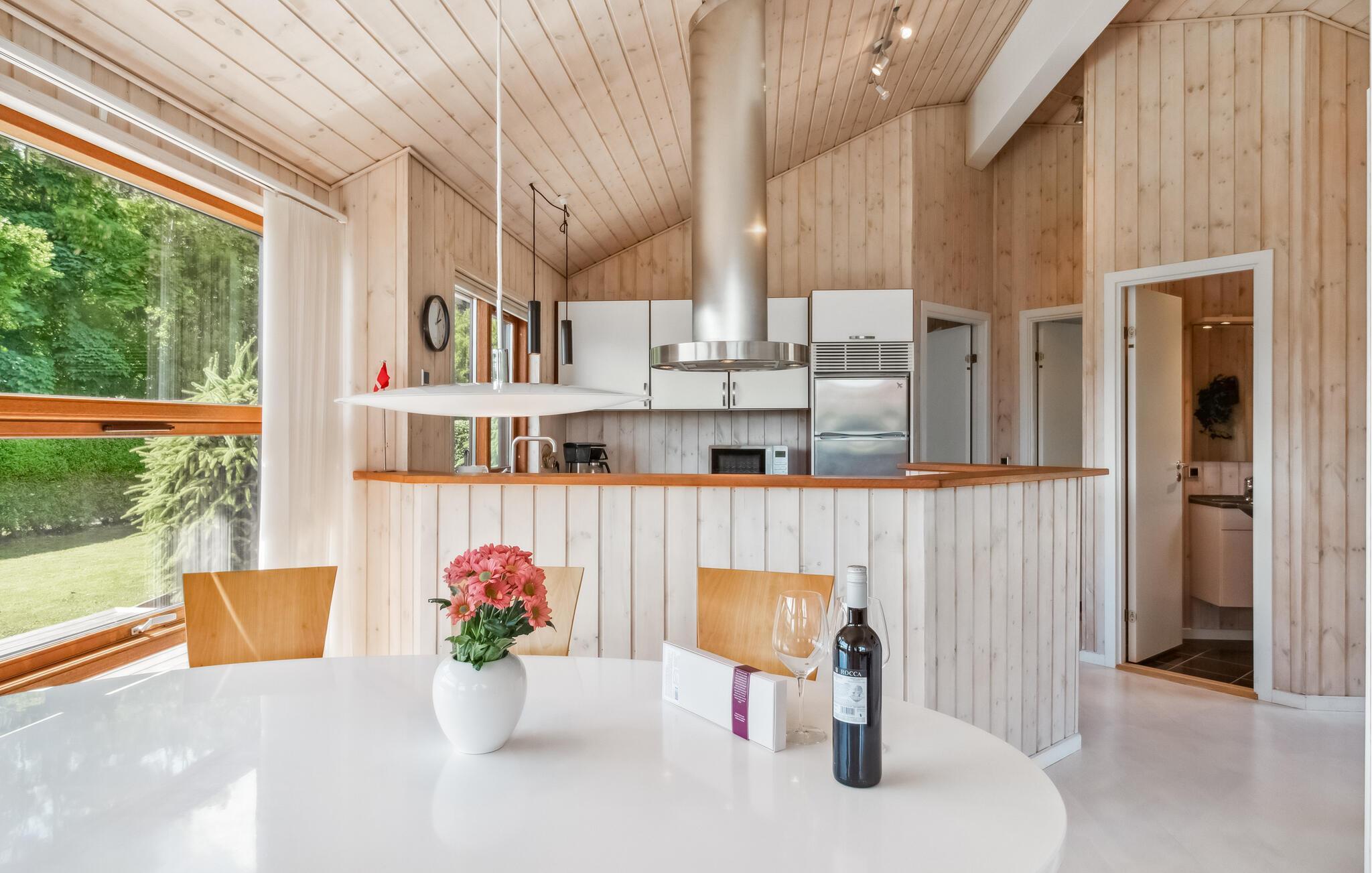 Glæd jer til en afslappende ferie i dette flotte feriehus af træ i Binderup.