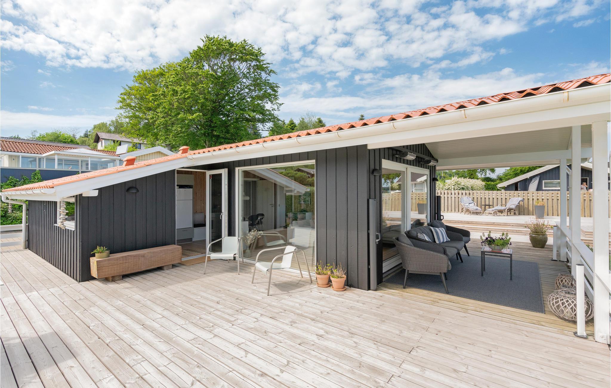 Med den skønneste udsigt til vandet både fra de delvis overdækkede terrasser og inde fra stuen, er dette sommerhus perfekt til jeres ferie.
