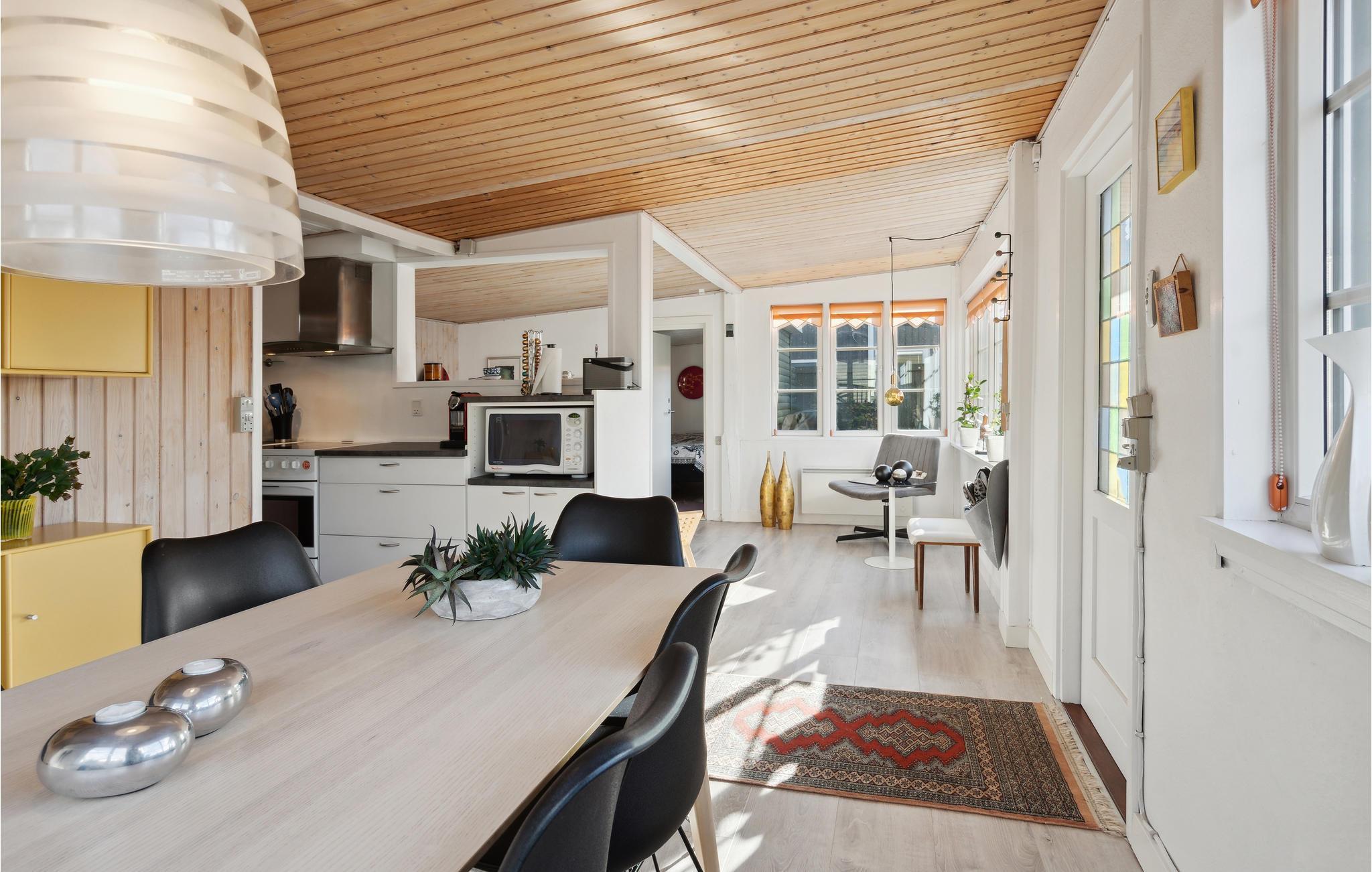 Velkommen til dette hus, som ligger i kort gåafstand fra det rolige vand ved Binderup Strand. Her er der gode rammer til en familieferie eller en hyggelig tur med et vennepar. Giv jer god tid til madlavningen og dæk op rundt om spisebordet, hvor I kan nyde lyset og udsigten over området. Afslut dagene med indendørshygge og brætspil i den lyse stue.