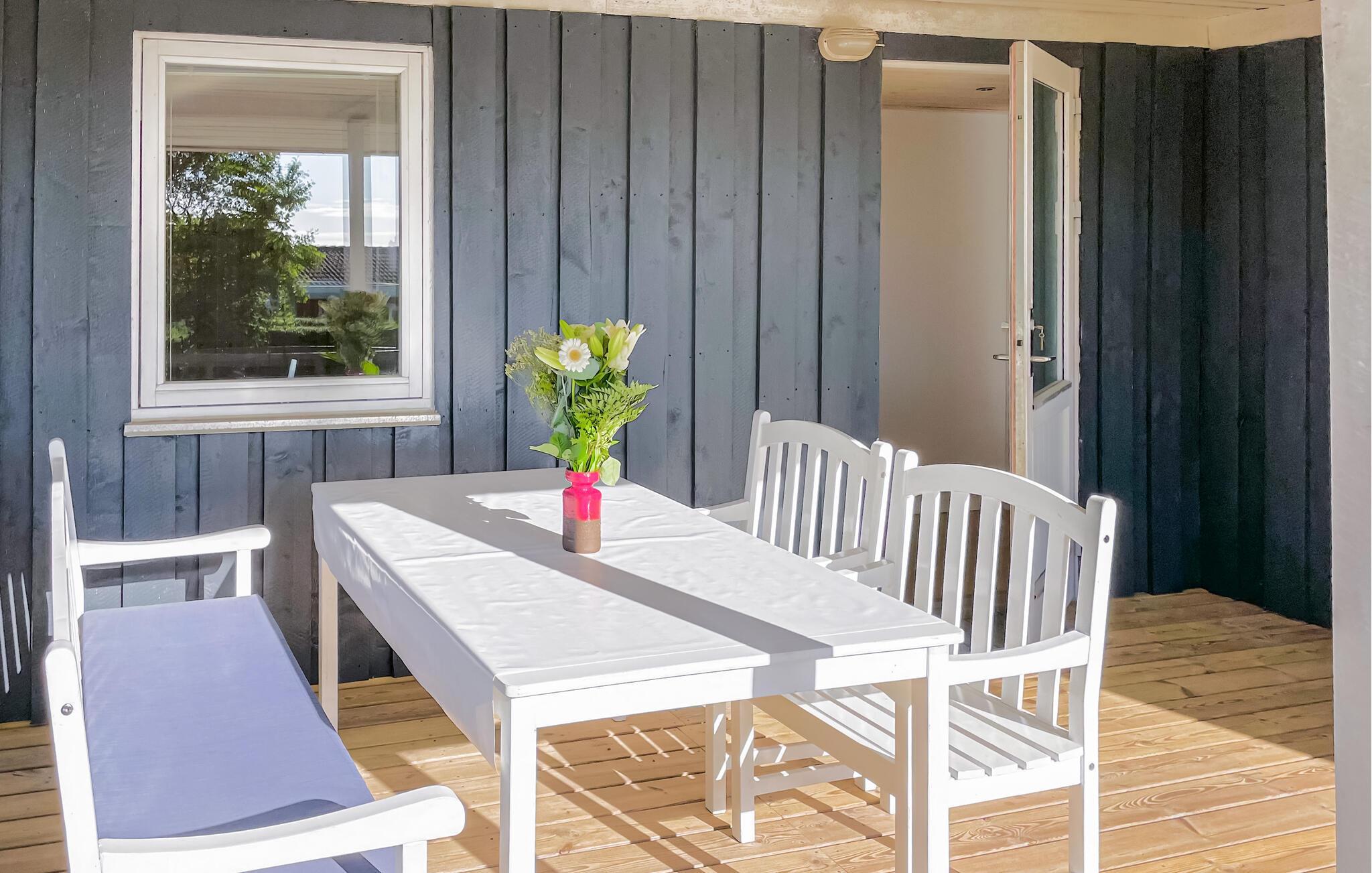 Herfra er der adgang til en stor træterrasse med flere solkroge, hvor I kan nyde sommervejret i fulde drag. Slap af under parasollen med en kold forfriskning, mens jeres børn leger på grunden.