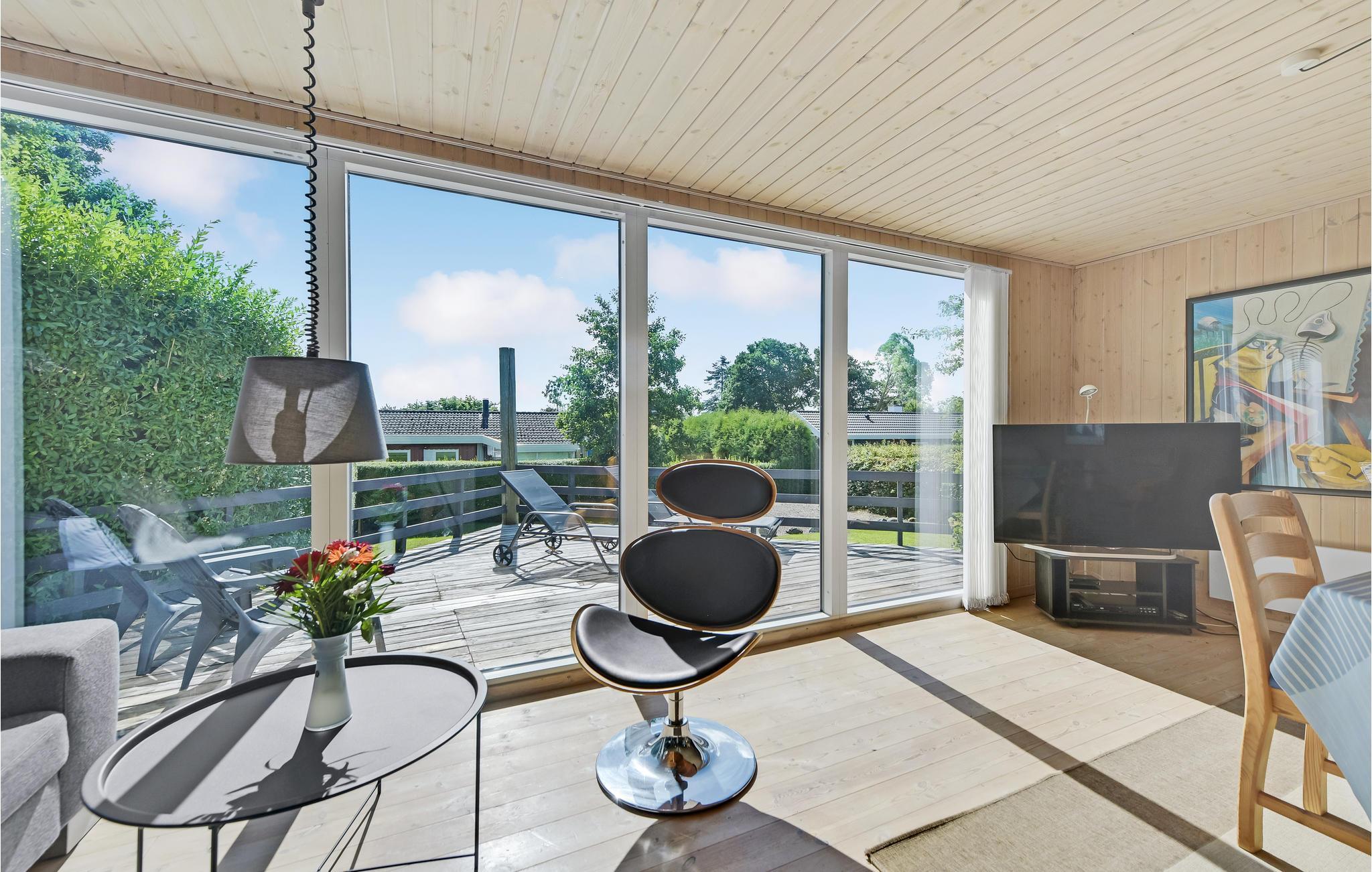 Dette skønne sommerhus ligger i et dejligt område ud til Lillebælt. Stilen er hyggelig, skandinavisk og kvalitetsbevidst med brug af træmaterialer og en enkel farveskala. I stuen sørger gulv til loft-vinduerne for et behageligt lysindfald.