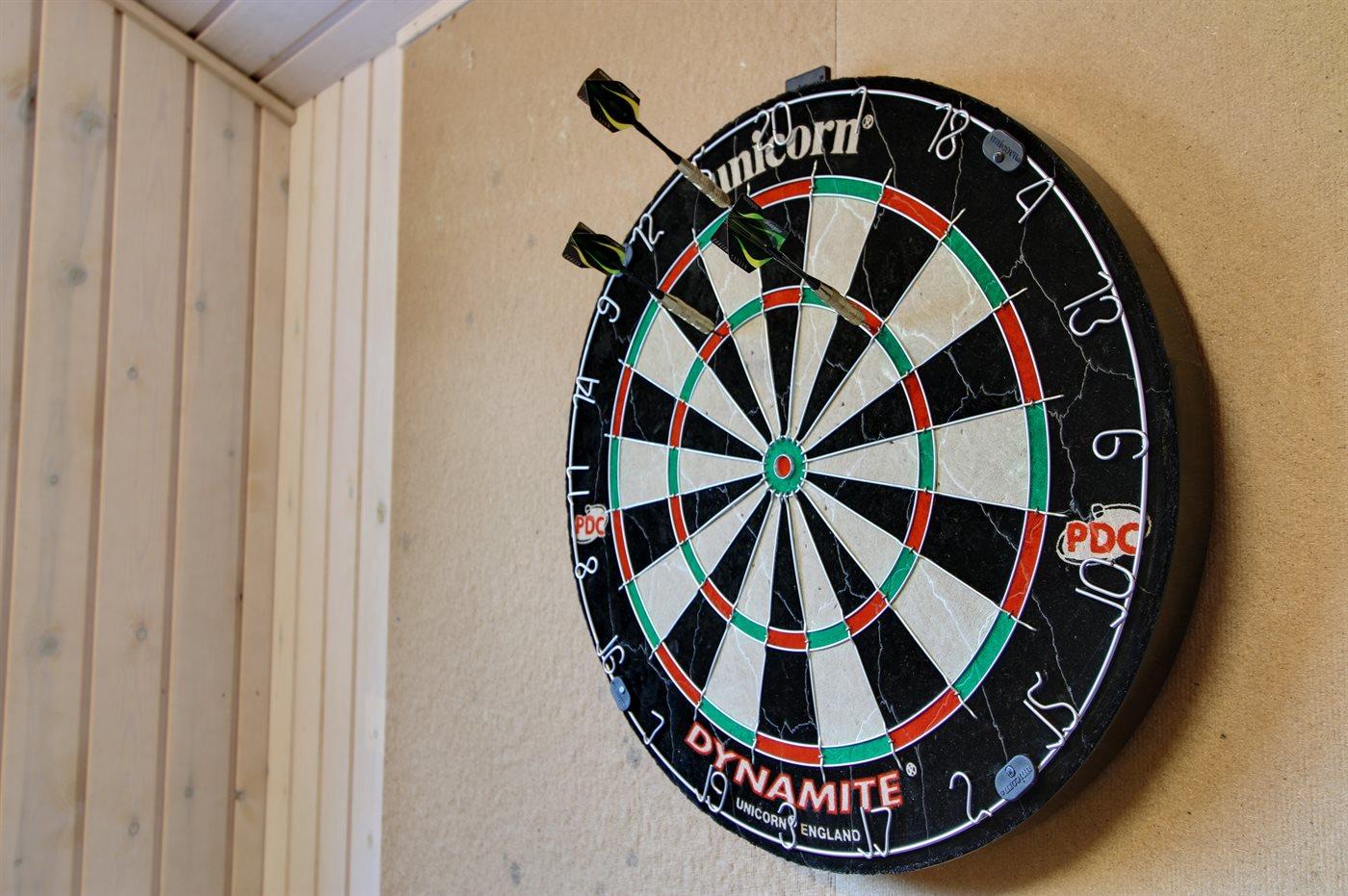 I aktivitetsrummet er der følgende udstyr: Dart. Bordfodbold.