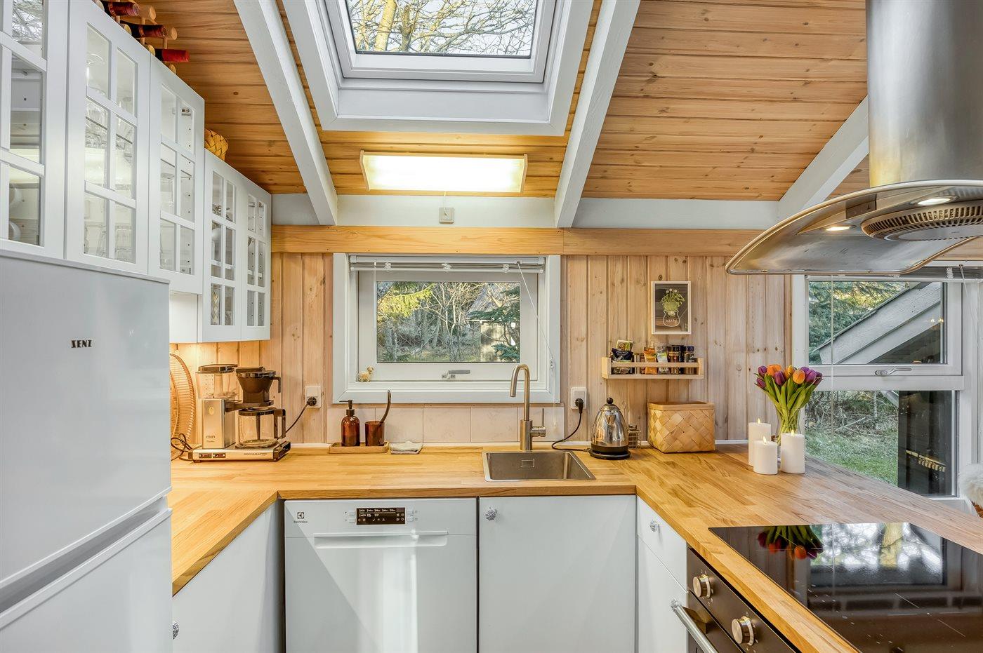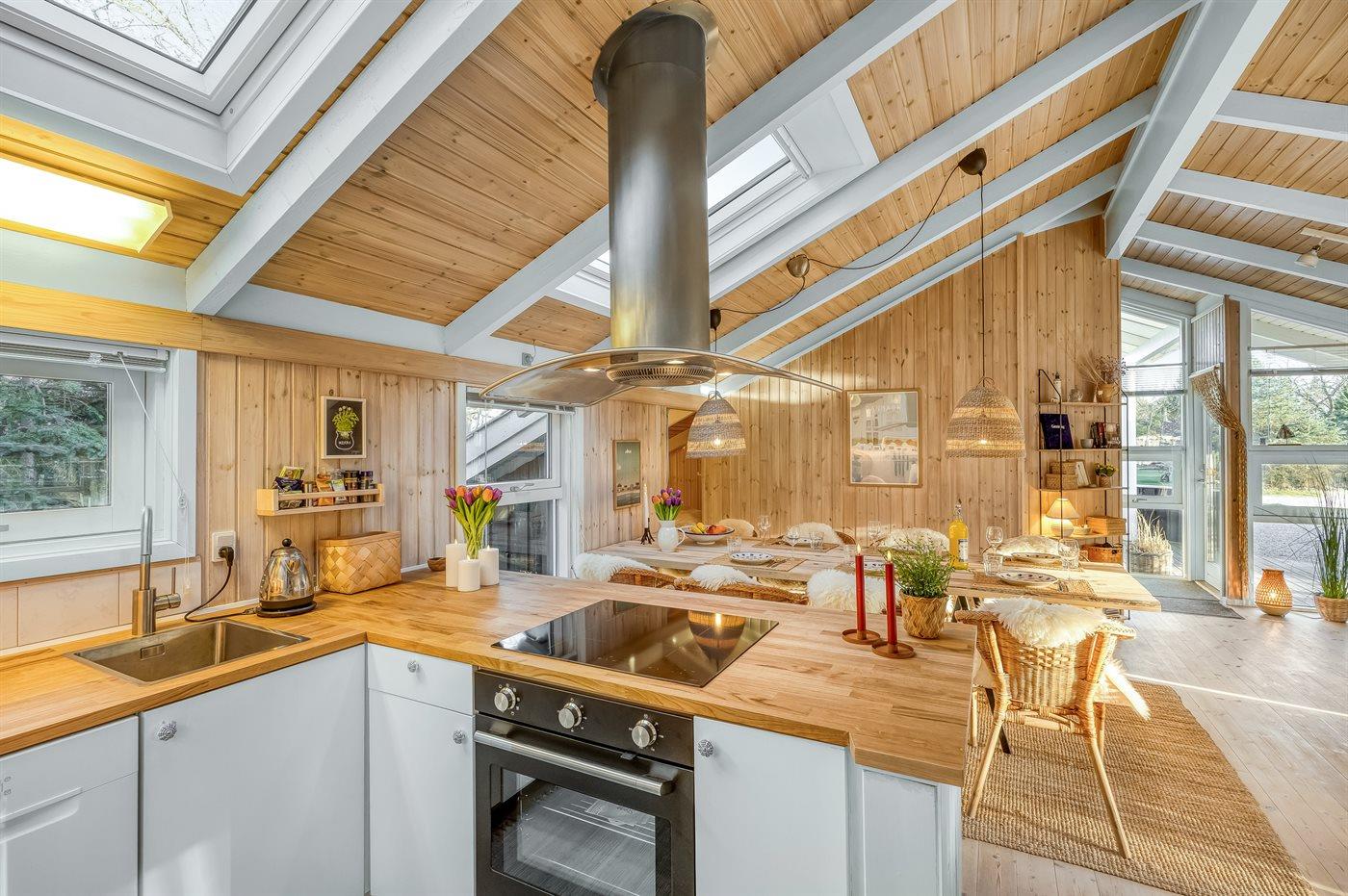 Køkkenet er udstyret med 1 køleskab. Der er 4 keramiske kogeplader, varmluftovn, mikrobølgeovn samt opvaskemaskine.