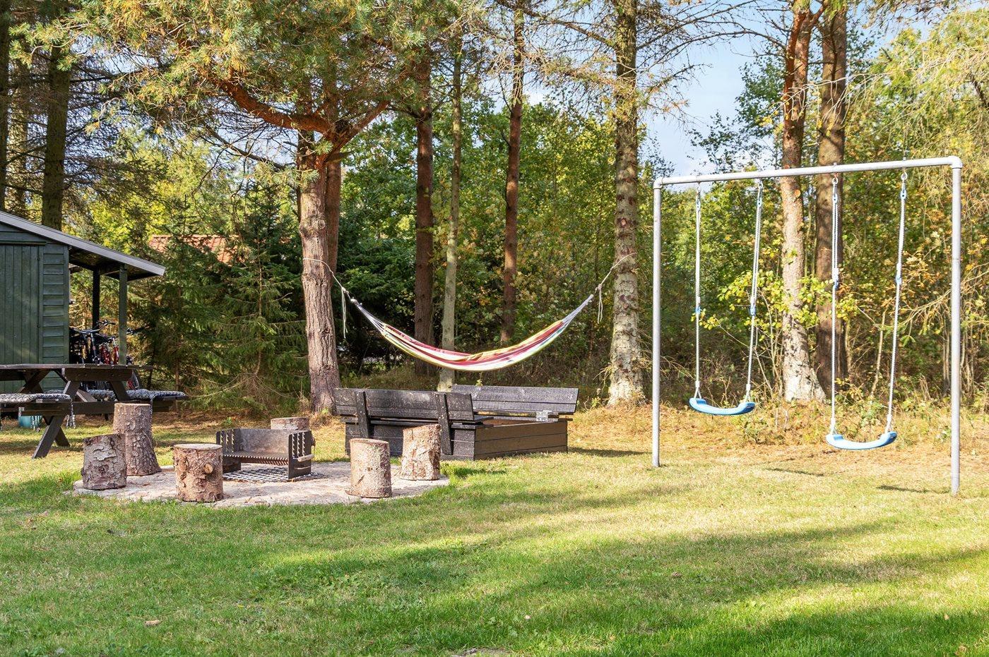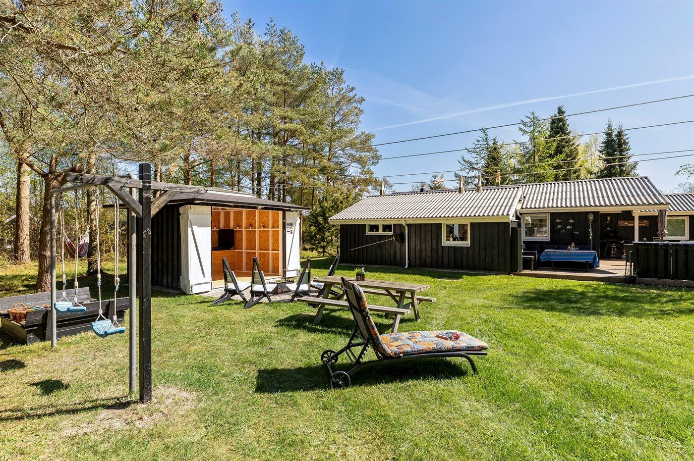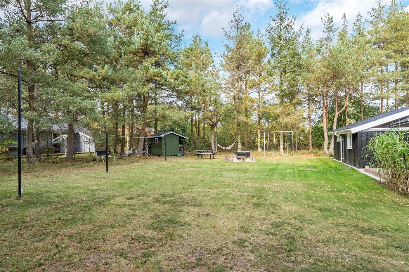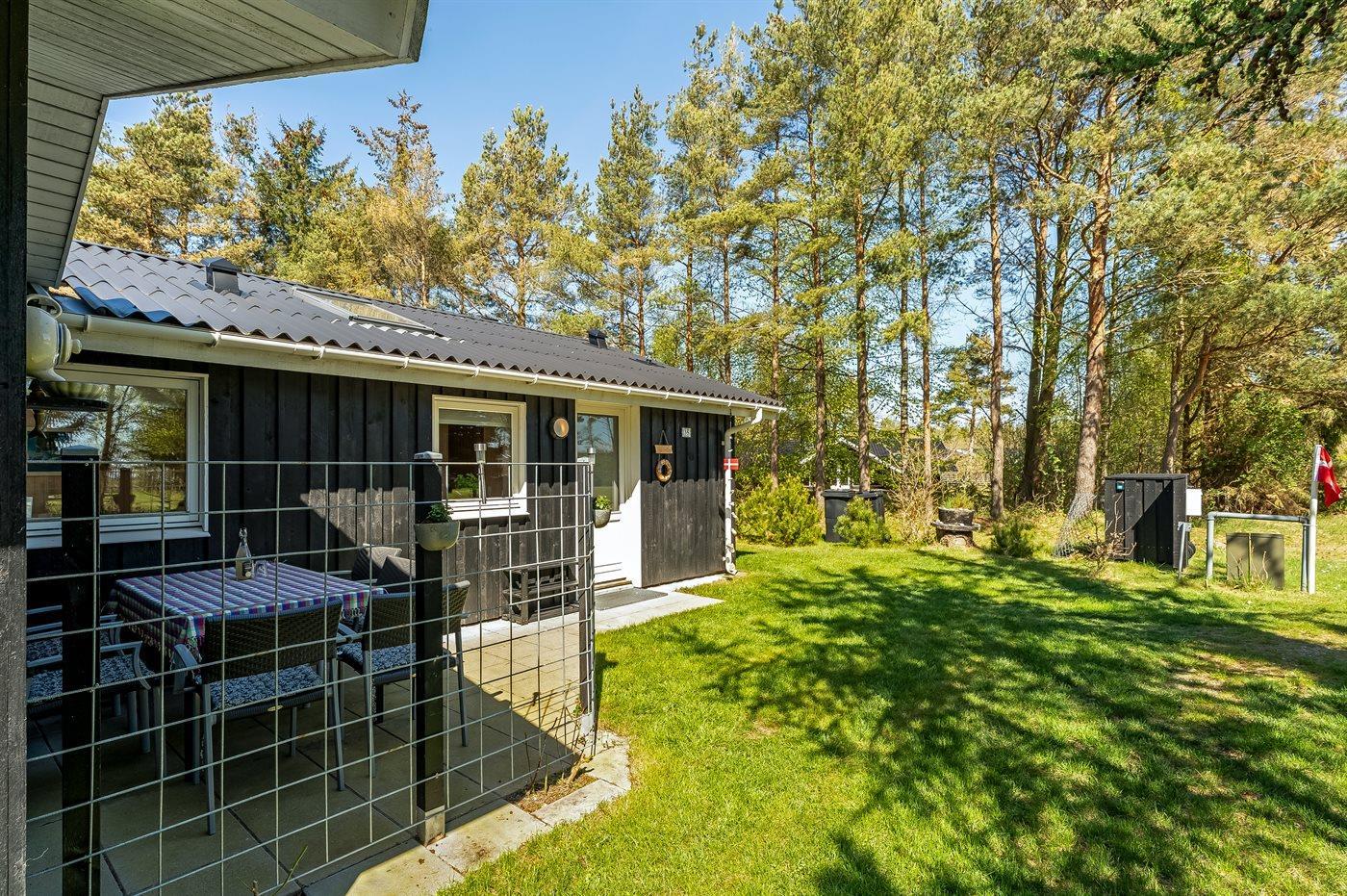 Ferieboligen er beliggende på en 1058 m² stor havegrund. Der er 200 m til havet. Nærmeste forretning er beliggende i en afstand af 2000 m. Der er en golfbane i en afstand af 500 m. Til ferieboligen hører 40 m² terrasseareal. Desuden er der 9 m² overdækket terrasse. Gynge. Sandkasse. Bålsted. Der er installeret stik til opladning af elbil. Parkering ved ferieboligen.