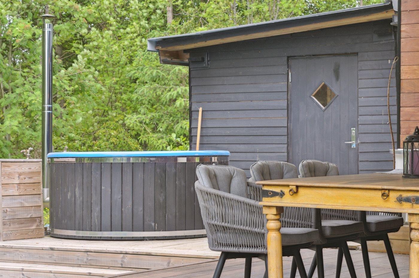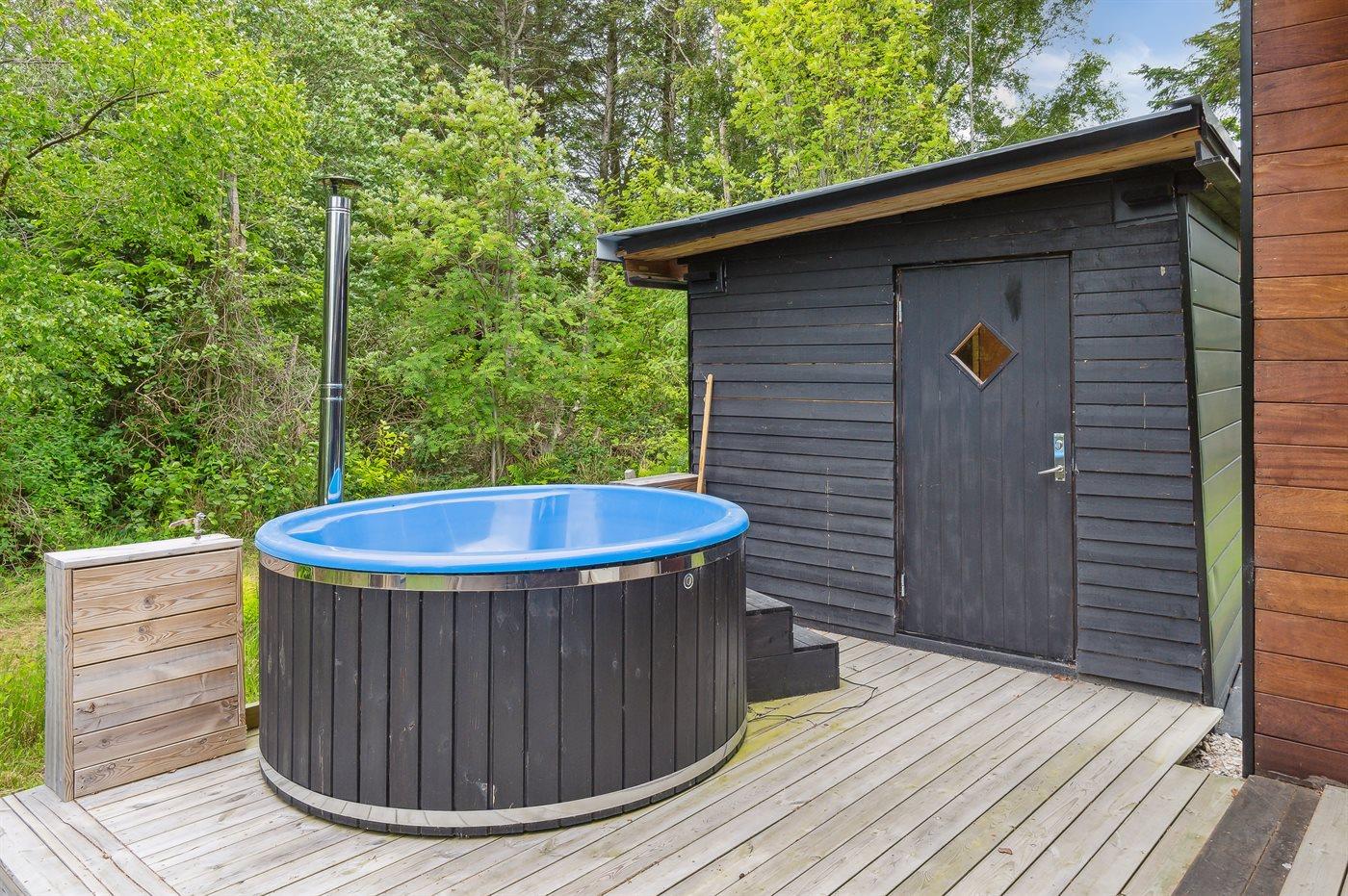 Der er mulighed for afslapning i det udendørs vildmarkskar til 4 personer.