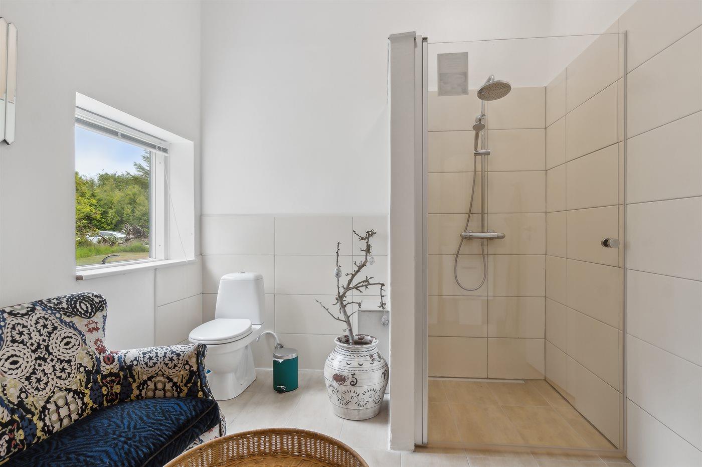 Der er 2 badeværelser med bruseniche og 2 toiletter. Der er gulvvarme på 2 badeværelser.