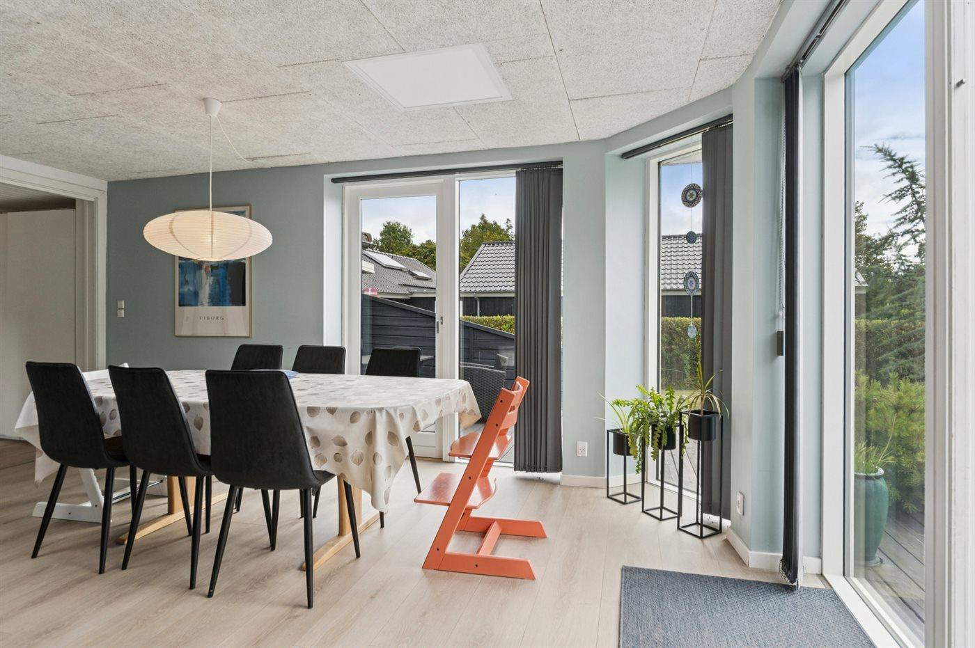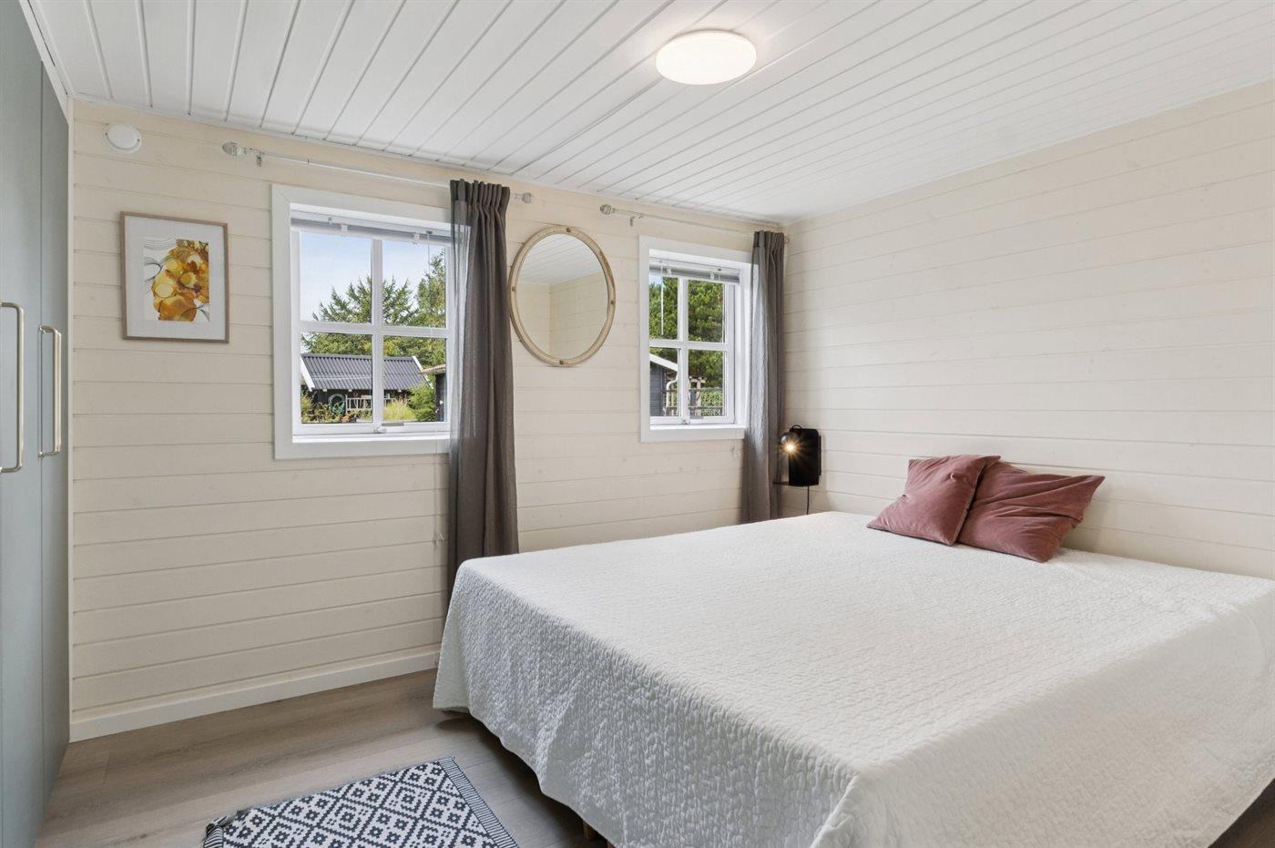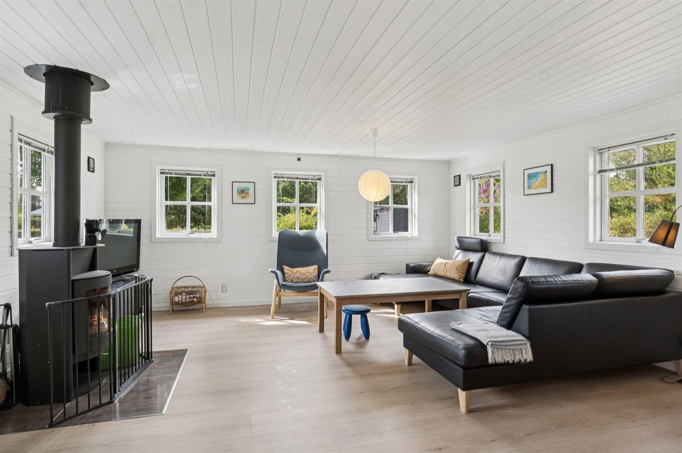 Indvendig fremstår sommerhuset i rigtig flot stand og har gennemgået en stor renovering i 2020. Husets hjerte er det store og lyse køkken/alrum og stue i ét med masser af lysindfald og med direkte adgang til den skønne terrasse. Sommerhuset er rigtig godt indrettet, og her er god plads til f.eks. to familier, som ønsker at holder ferie sammen, eller f.eks. en børnefamilie, som ønsker at tage bedsteforældre med på ferie - mulighederne er mange i dette skønne sommerhus.