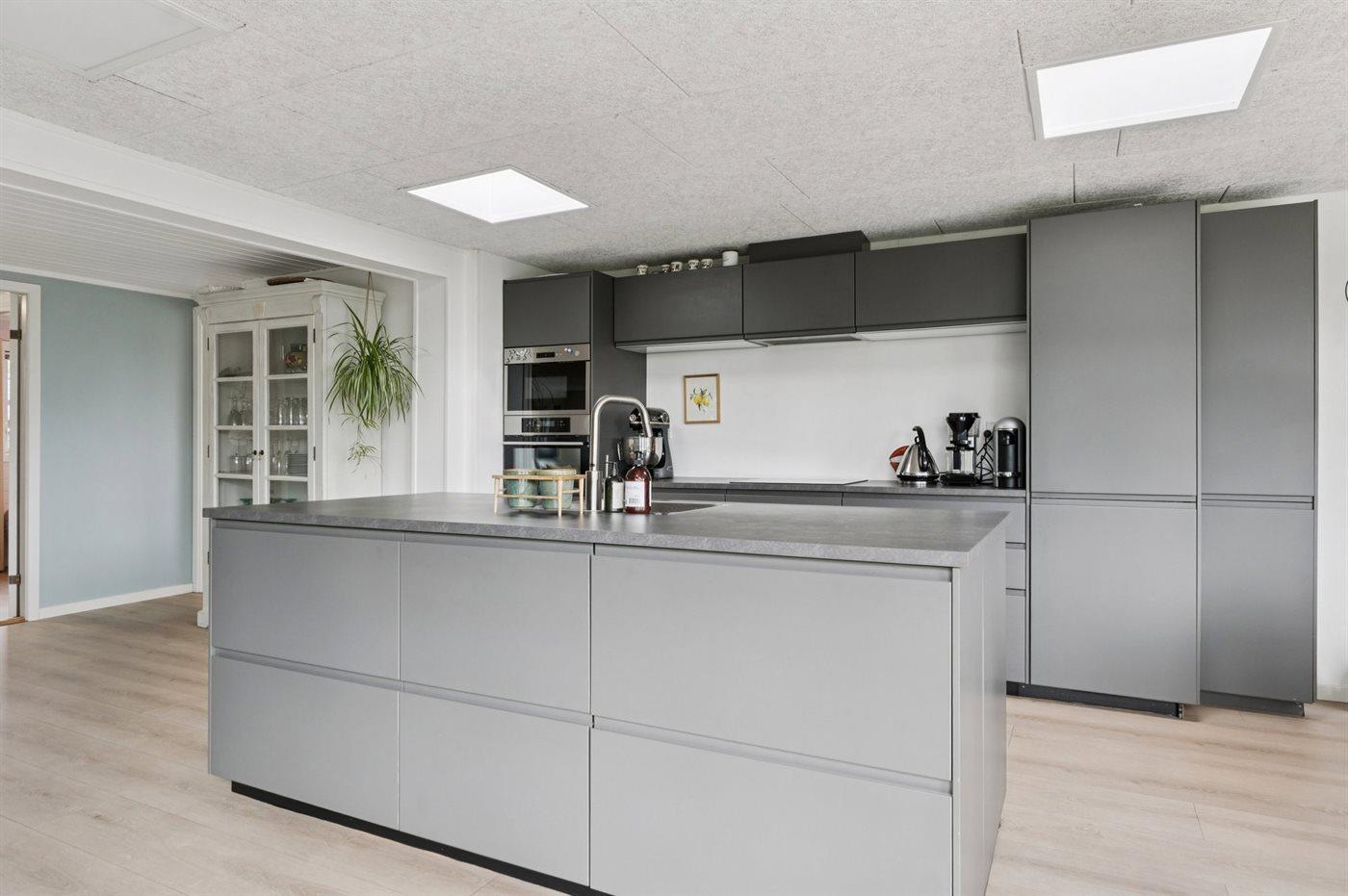 Køkkenet er udstyret med 1 køleskab. Der er 4 induktionskogeplader, varmluftovn, mikrobølgeovn samt opvaskemaskine.