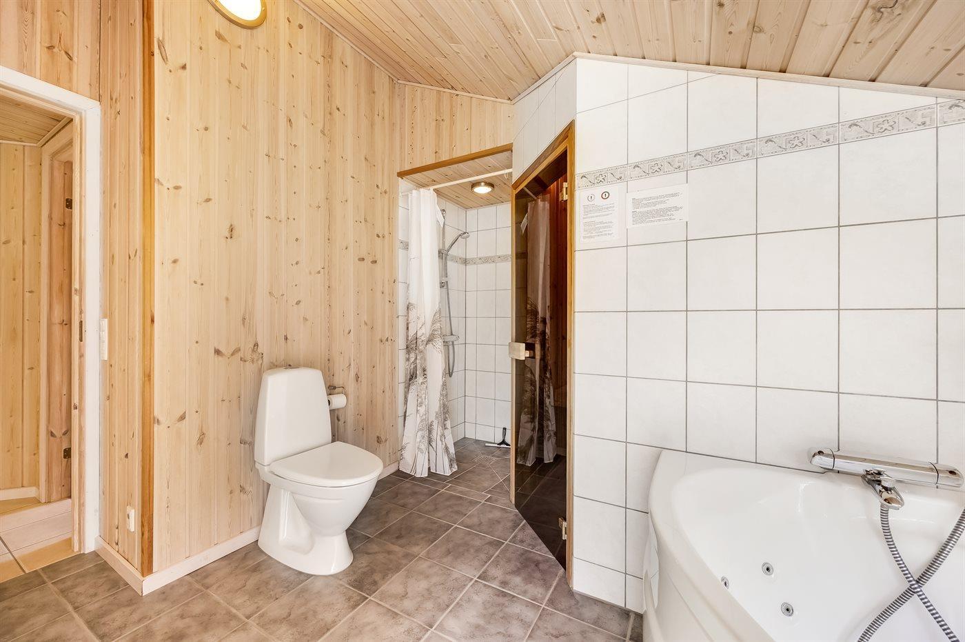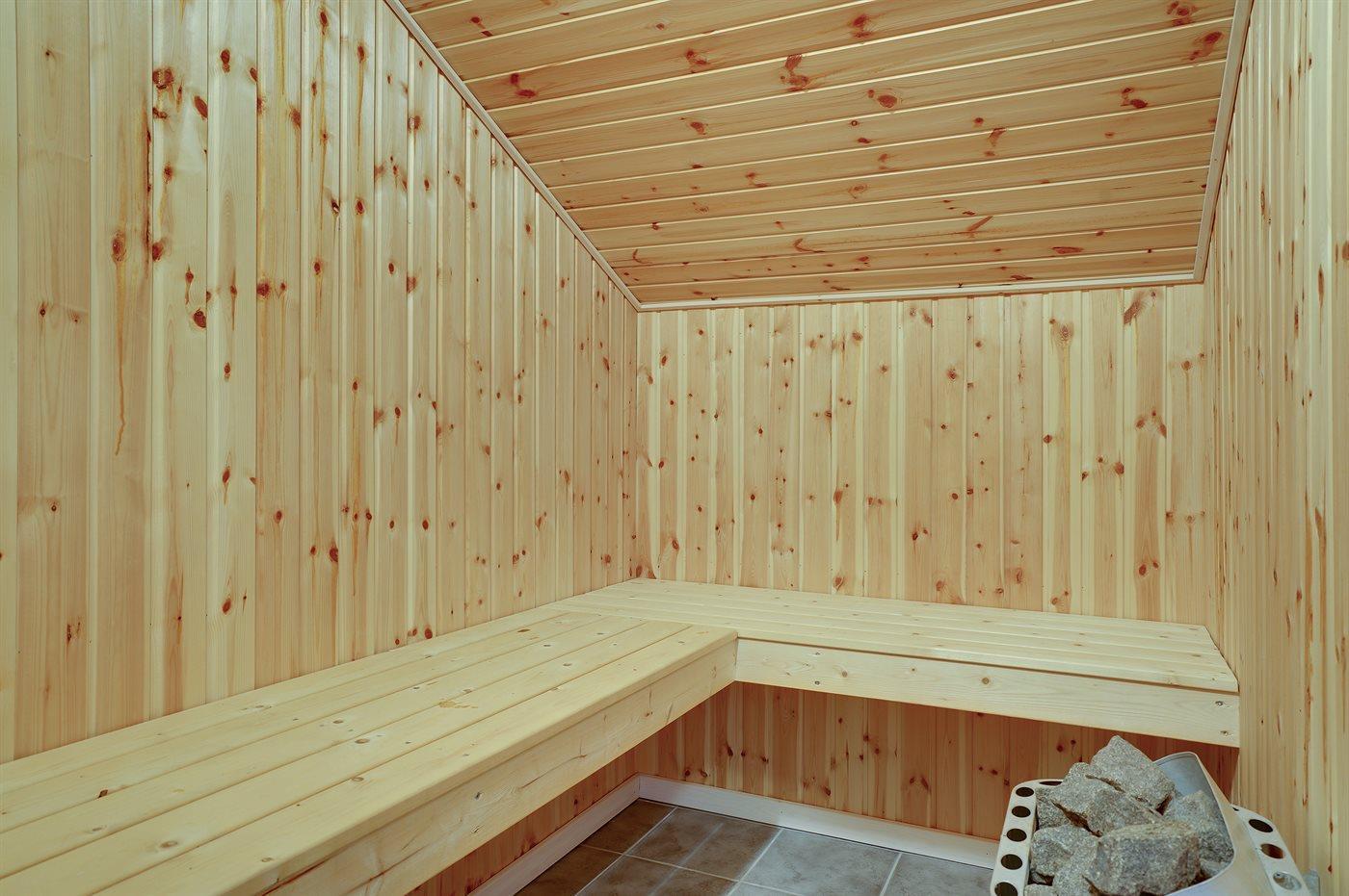 Der er 2 badeværelser med bruseniche og 2 toiletter. Der er gulvvarme på 2 badeværelser. I saunaen er der mulighed for afslapning.