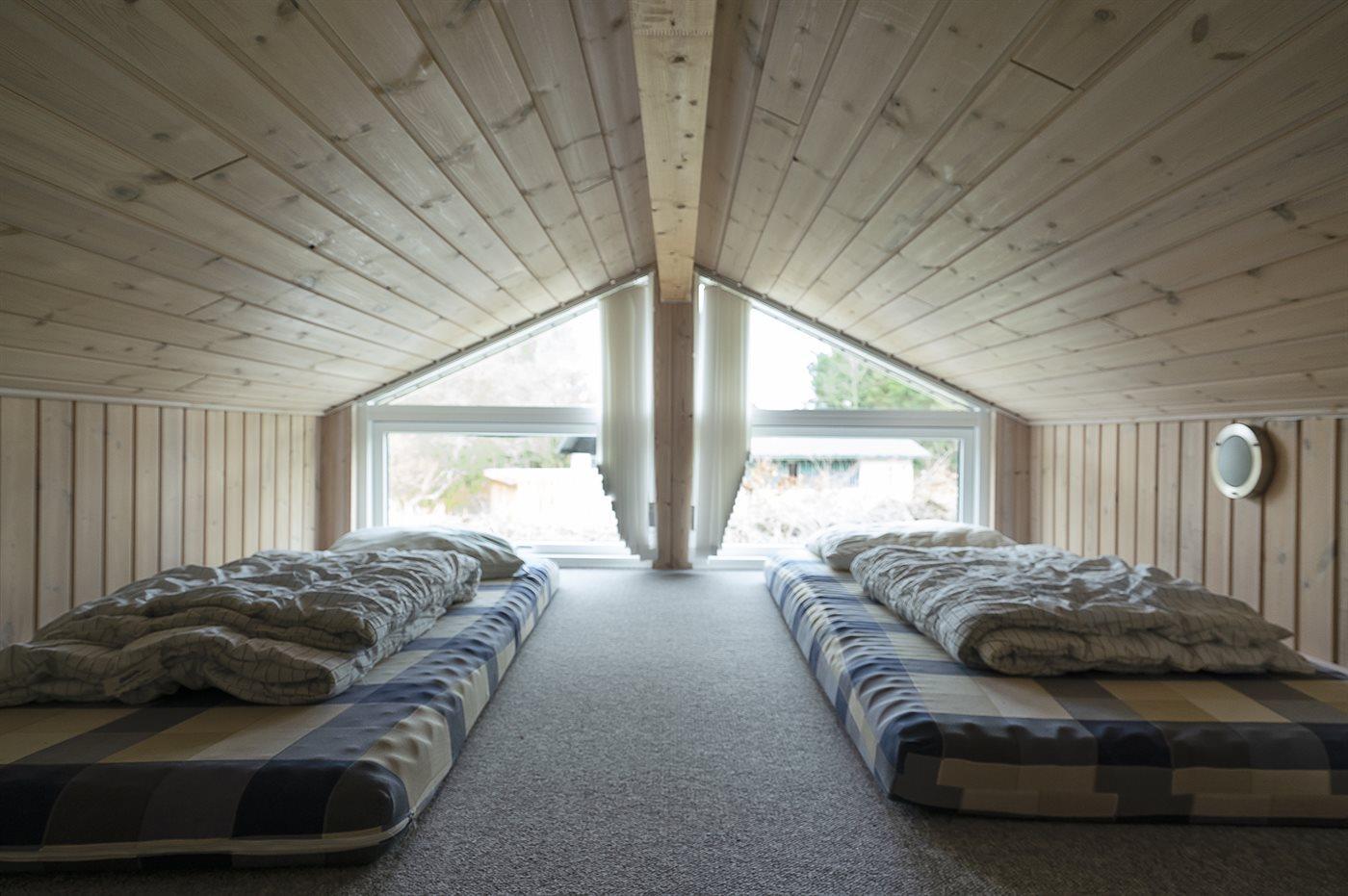Der er i alt 3 soveværelser. Sovepladserne fordeler sig på: 6 sovepladser i dobbeltsenge. 2 sovepladser i enkeltsenge. 2 af disse sovepladser befinder sig på husets hems. Derudover er der 1 stk. barneseng.