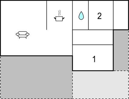 Opholdsstue/køkken - 2 Sovepladser. (Sofa, madras eller lignende).