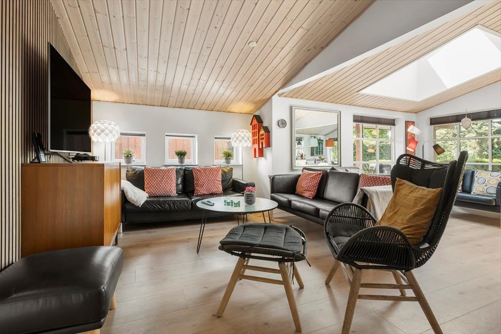 Spændende sommerhus, der er bygget i 2005. Sommerhuset er indrettet med kombineret køkken og opholdsstue med store vinduespartier, som giver masser af lys i huset. Lyst og moderne køkken med indbygget ovn, kogeplader, opvaskemaskine og køleskab med fryser. Smagfuldt indrettet opholdsstue med udgang til terrasse, brændeovn, sofaer, lænestole, god spiseplads, Smart TV med youSee TV pakke med danske, svenske, norske, tyske programmer, og adgang til streamingtjenester (kræver eget login). Badeværelse med klinkegulv, bruseniche, SPA bad og gulvvarme. Bryggers med vaskemaskine og mikroovn Tre soveværelser, med dobbeltsenge. Huset opvarmes med varmepumpe, brændeovn og elvarme.