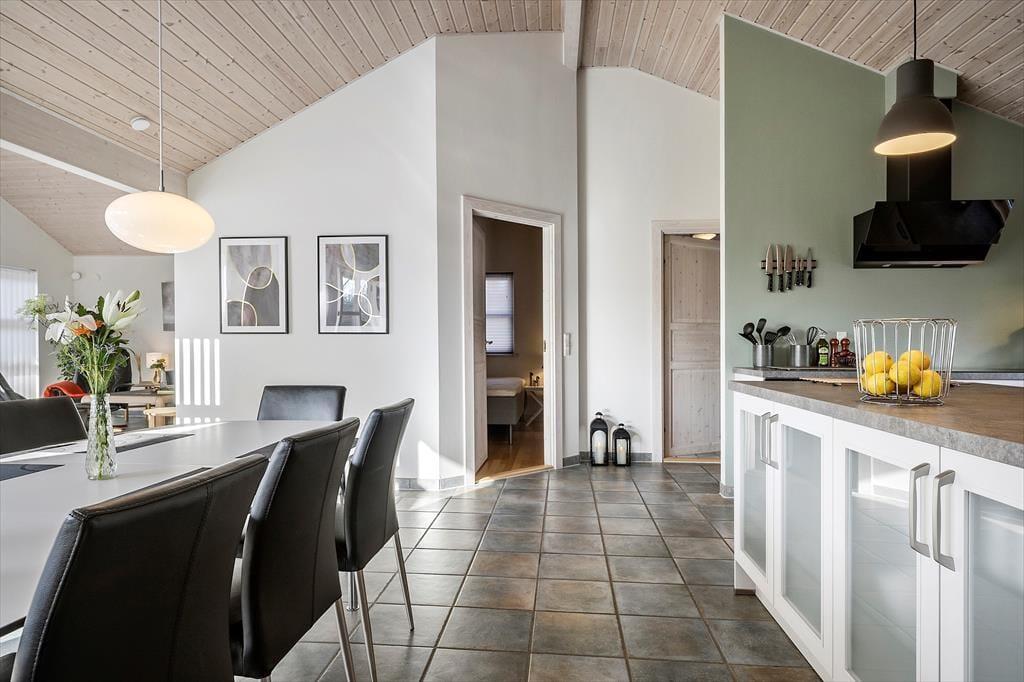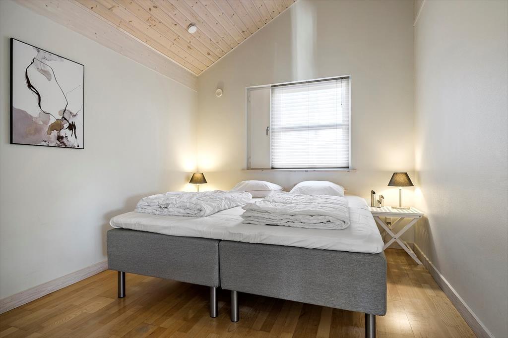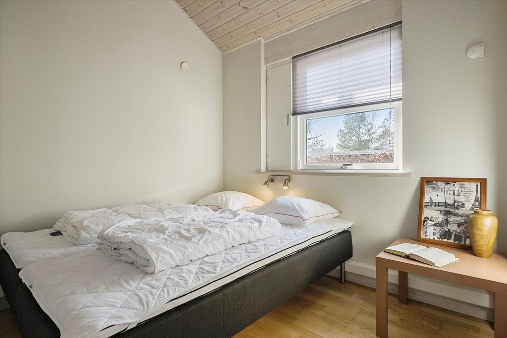 Med tre rummelige soveværelser er der plads til hele familien. To af værelserne har dobbeltsenge, mens det tredje er indrettet med to enkeltsenge. Derudover er der en hems med ekstra sovepladser – perfekt til børnene eller de ekstra gæster. Huset har desuden to badeværelser, hvoraf det ene byder på både spabad og sauna, så du kan koble helt af efter en dag fyldt med oplevelser. For ekstra komfort er der gulvvarme i hele huset og en brændeovn i stuen, så selv på de køligere dage er der lunt og behageligt.