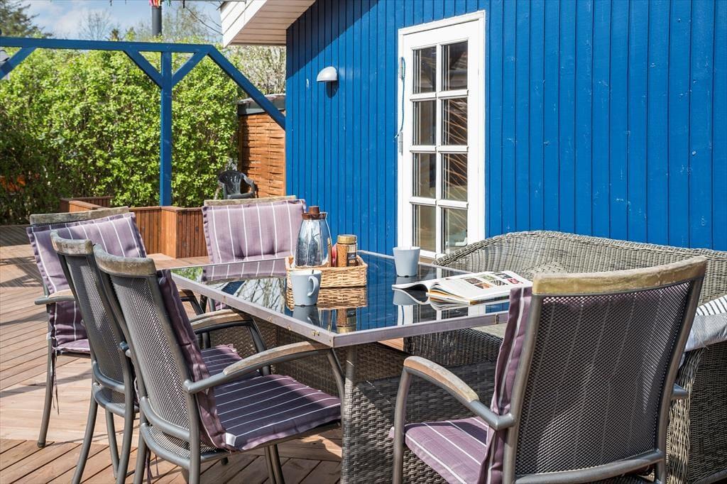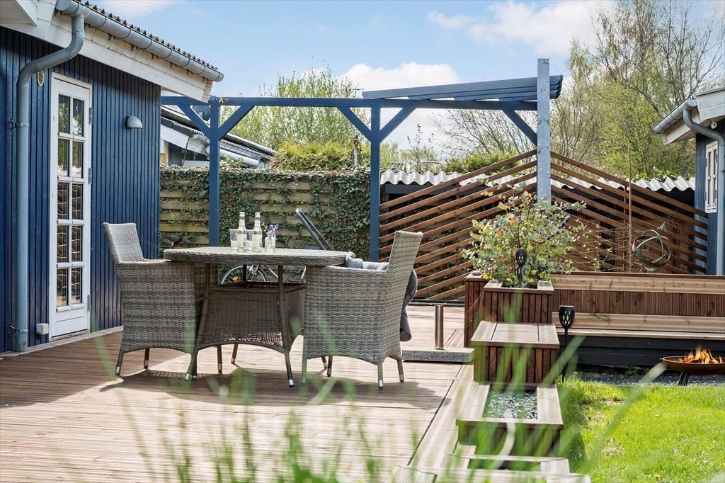Nyd livet udenfor: Fra flere af husets rum er der direkte udgang til den flotte nye terrasse, der går rundt om huset, her du kan nyde en kop kaffe og bare slappe helt af med en god bog. Haven indbyder til leg og aktiviteter, og der er en hyggelig bålplads, hvor I kan tænde op og nyde sommerstemningen om aftenen. Tag også en smut til stranden for en forfriskende dukkert eller en hyggelig strandtur.