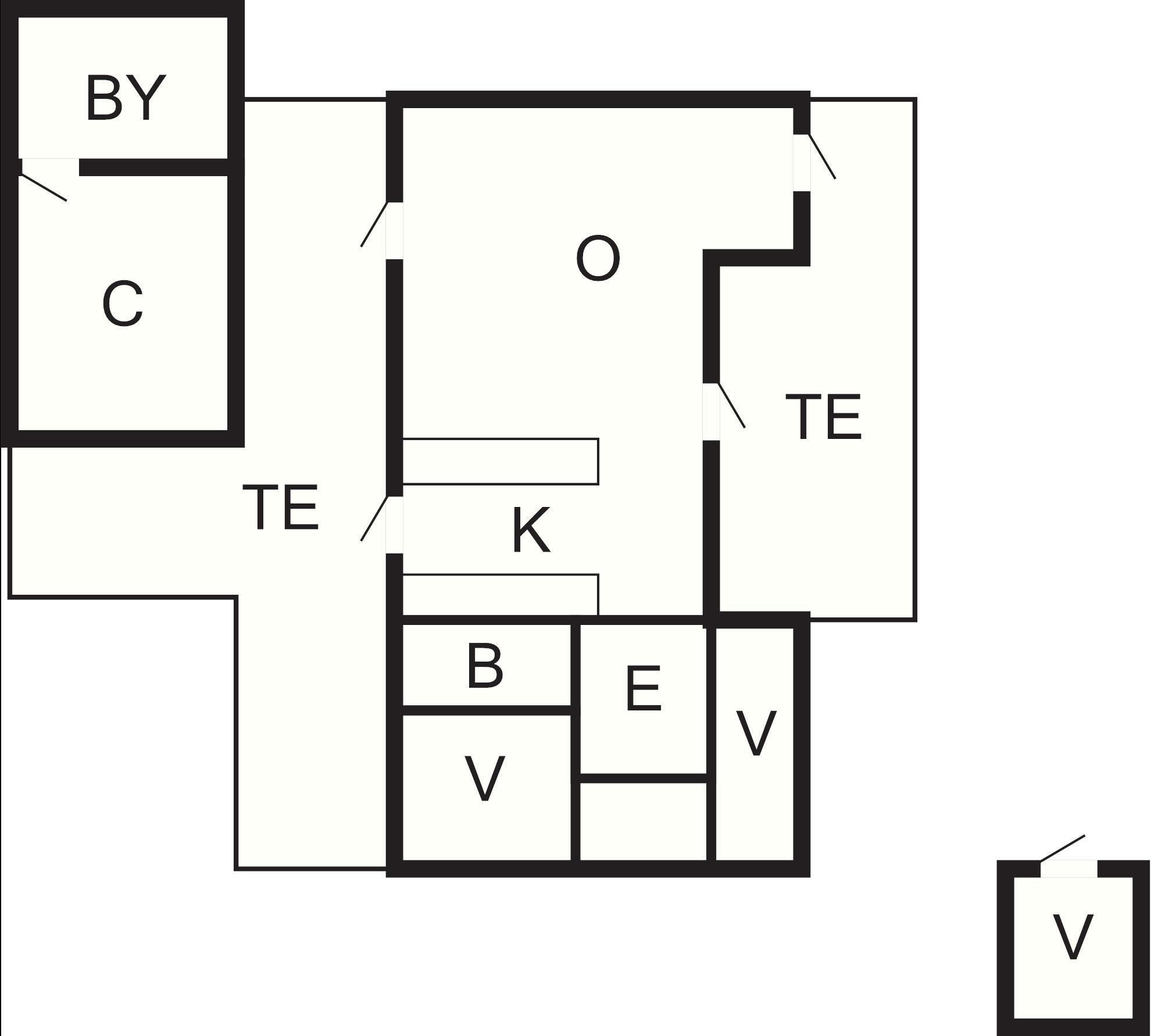 Køkken: El-komfur, køle-frys, emhætte, kaffemaskine, opvaskemask.