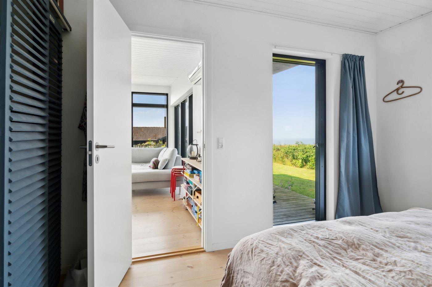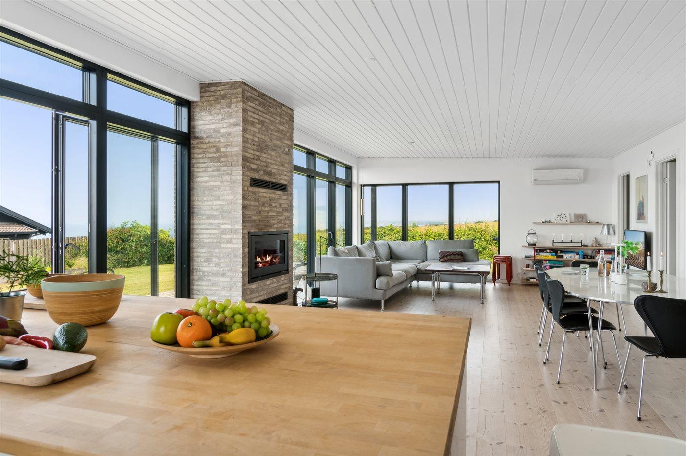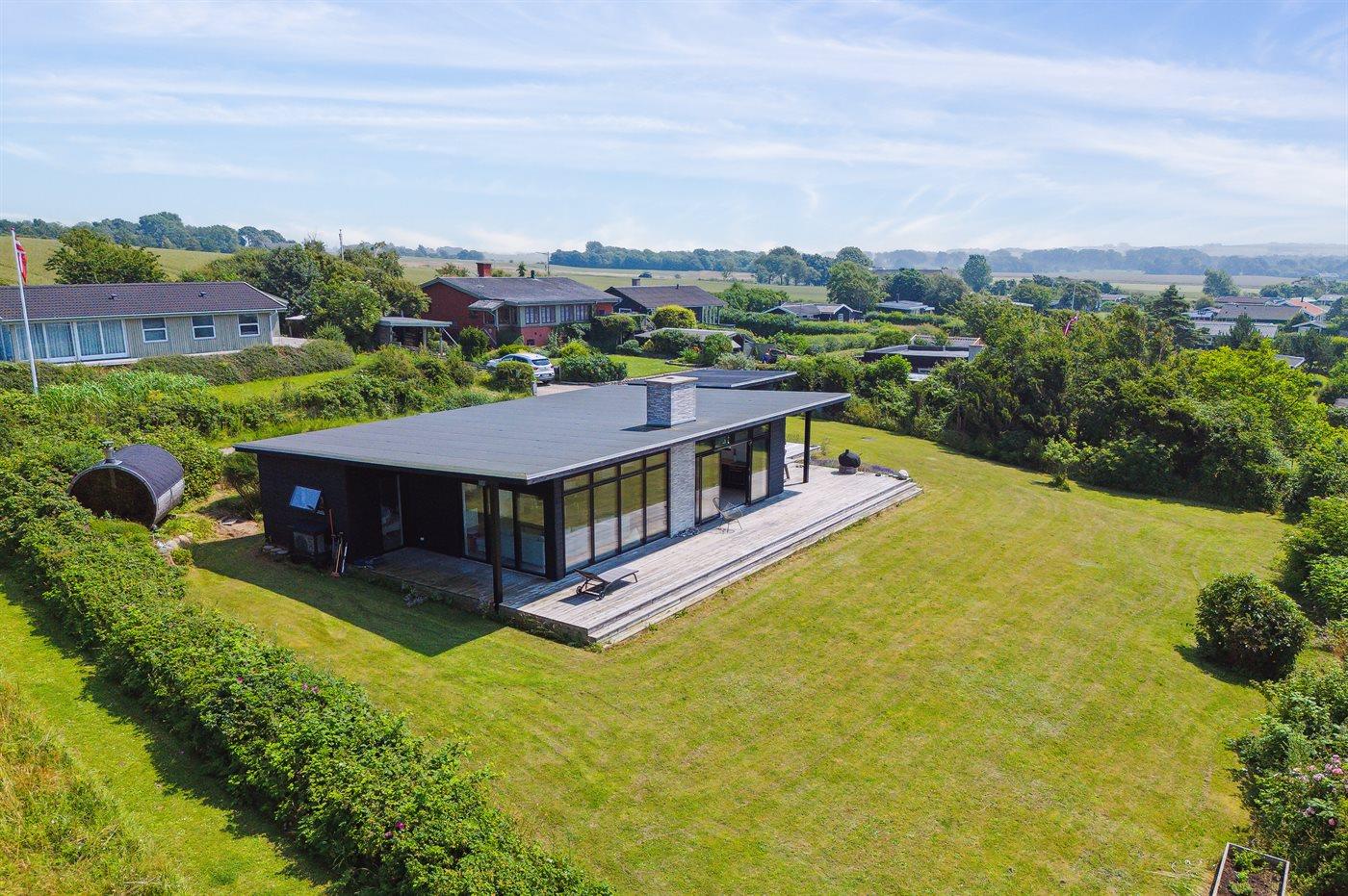 Fra huset og fra terrassen er der udsigt over Jammerland Bugt med kig helt til Asnæs og Kalundborg. Dette gælder også fra den udendørs sauna, hvorfra man kan nyde den flotteste udsigt. Huset fremtræder lyst og venligt på grund af det store lysindfald fra de mange store vinduespartier.