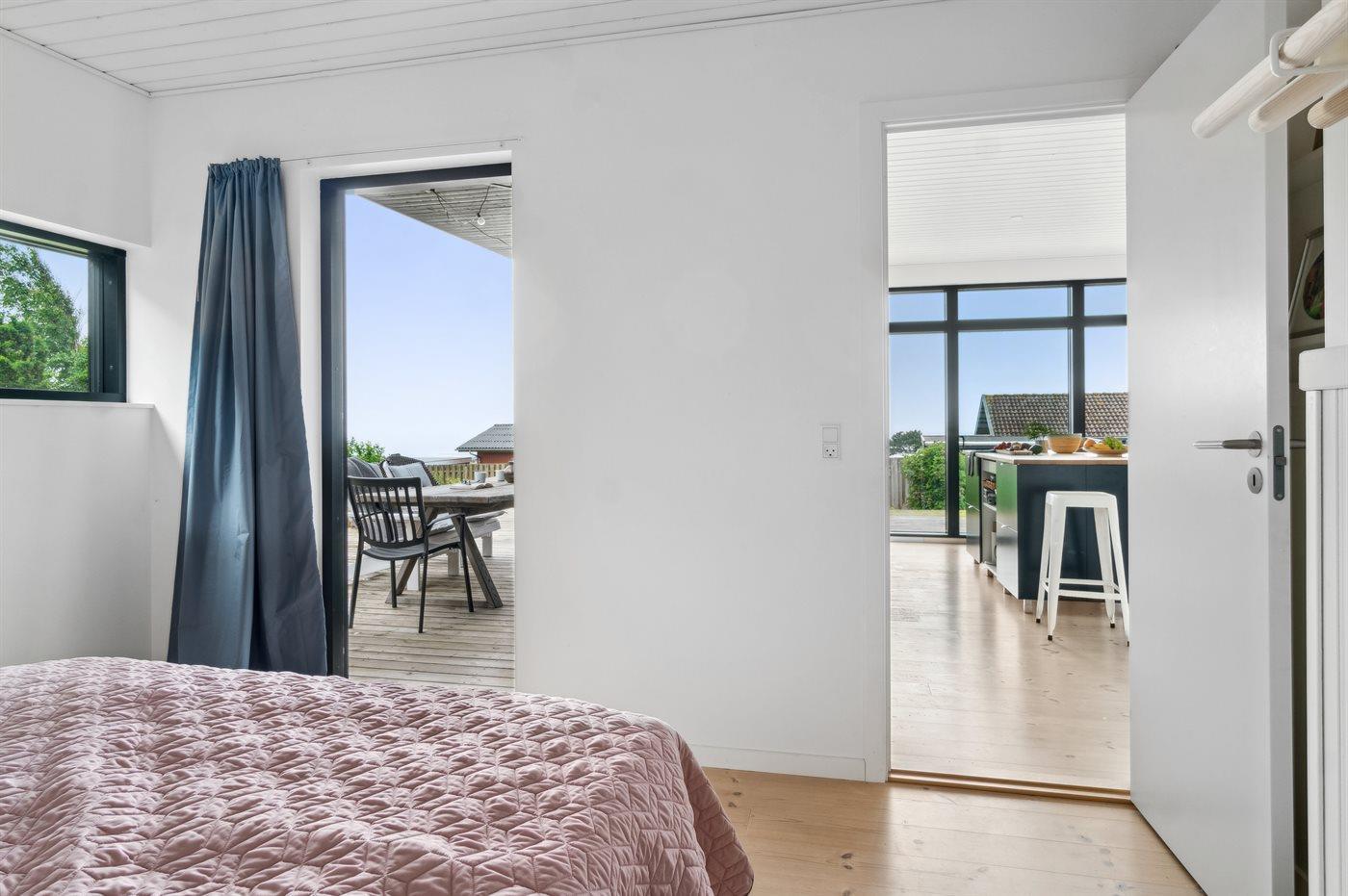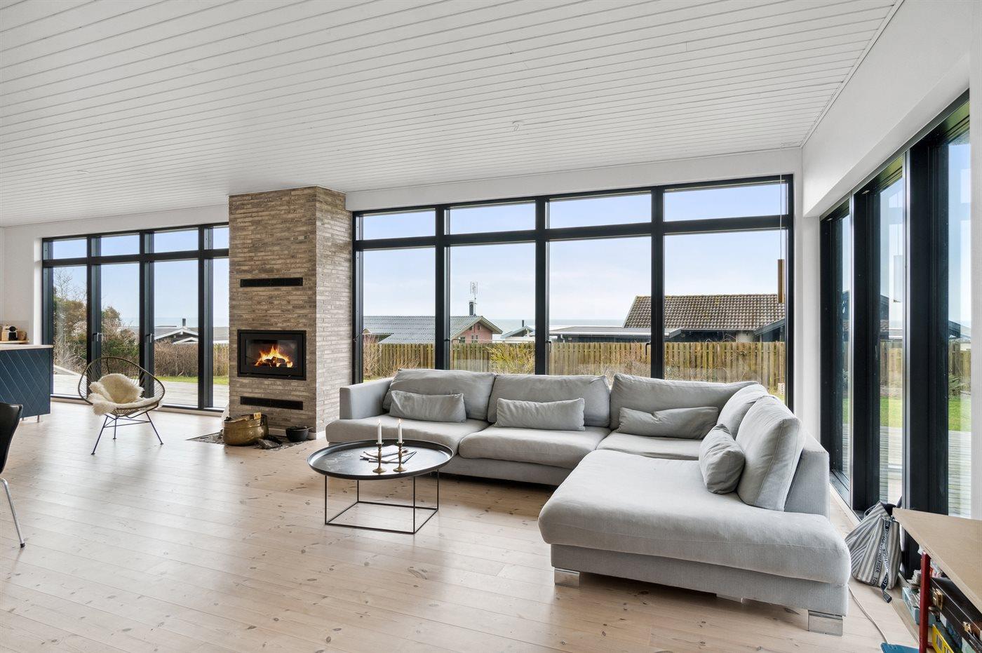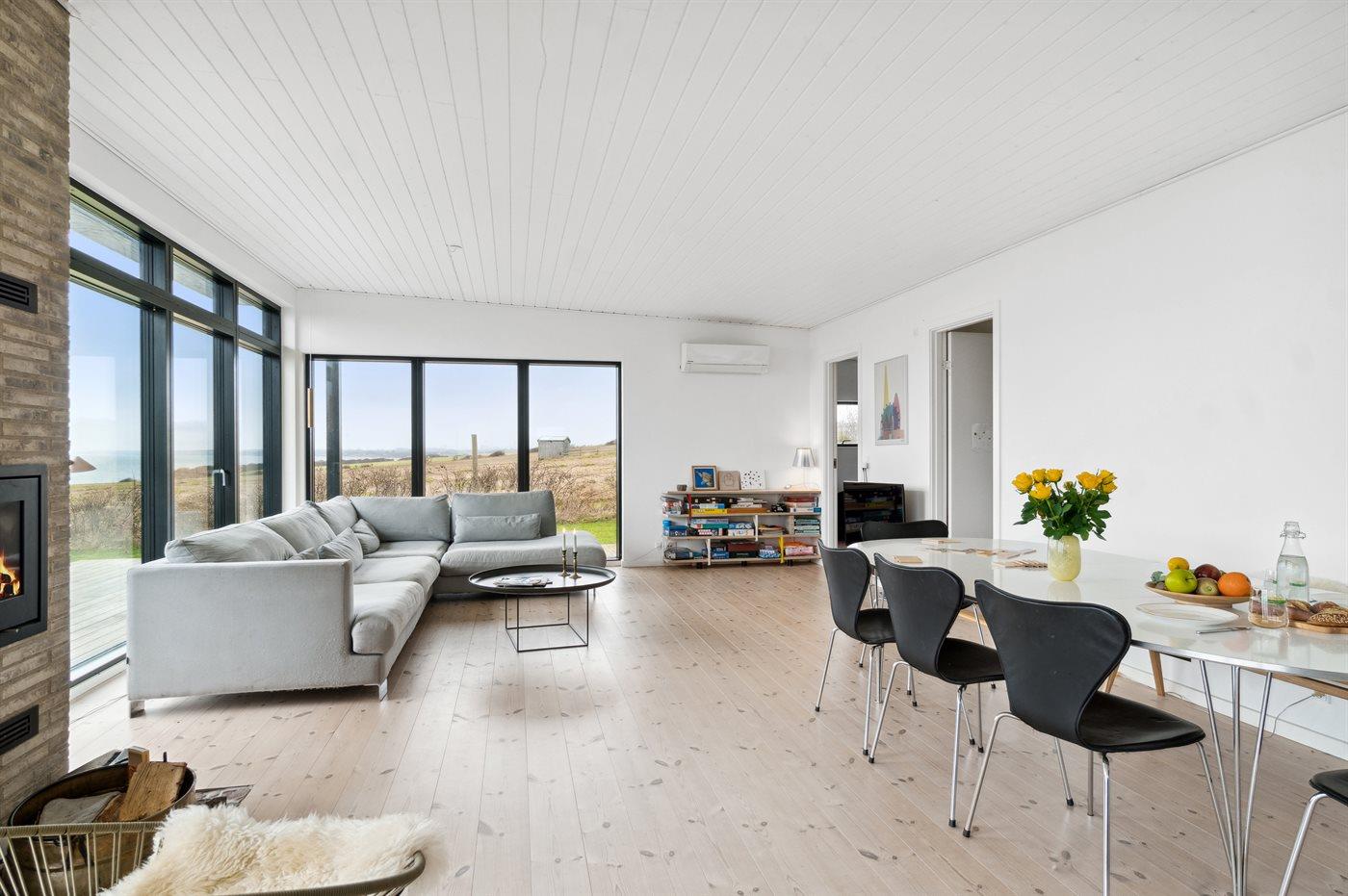 Fra huset og fra terrassen er der udsigt over Jammerland Bugt med kig helt til Asnæs og Kalundborg. Dette gælder også fra den udendørs sauna, hvorfra man kan nyde den flotteste udsigt. Huset fremtræder lyst og venligt på grund af det store lysindfald fra de mange store vinduespartier.