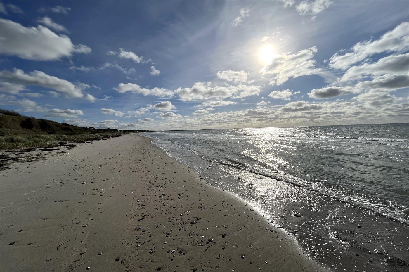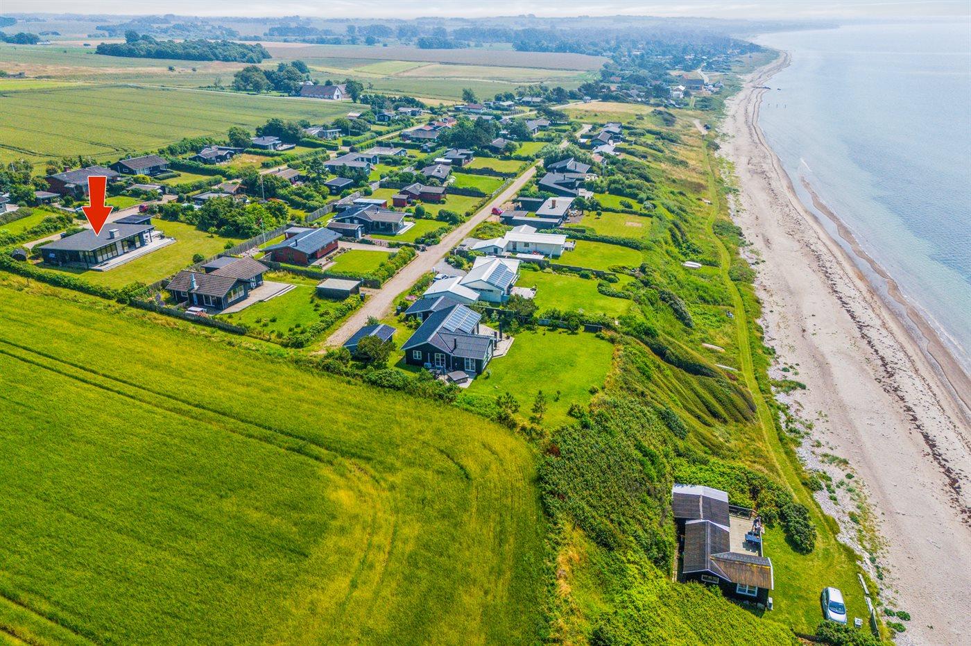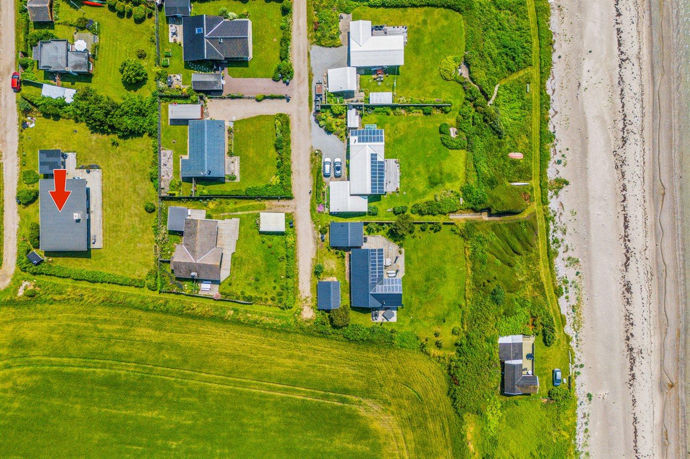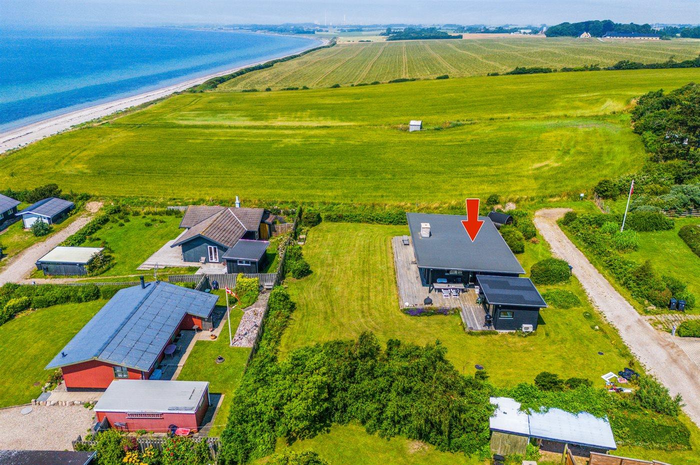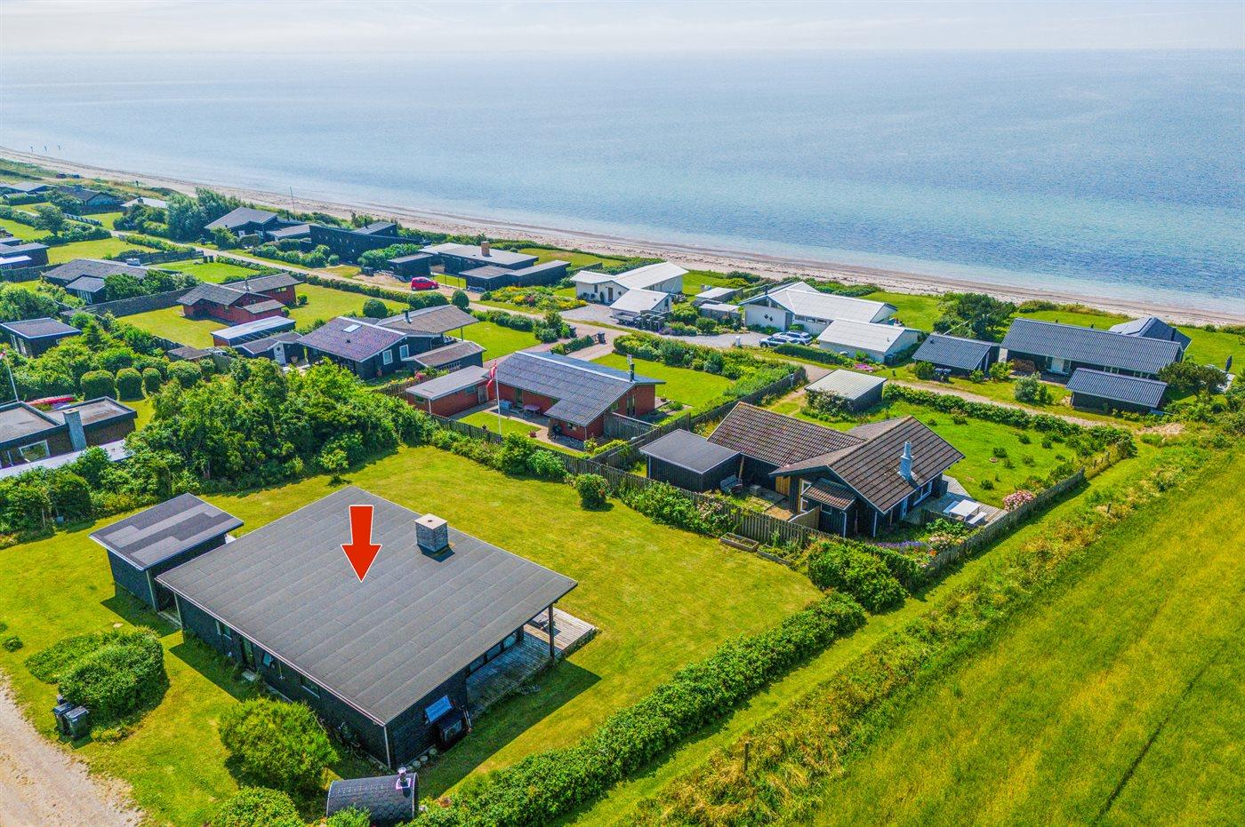 Kun 100 meter fra en dejlig og børnevenlig sandstrand og med udsigt til havet og åbne marker finder man dette skønne sommerhus. Huset er beliggende i et mindre og roligt sommerhusområde for enden af en blind vej og direkte ud til åbne marker.