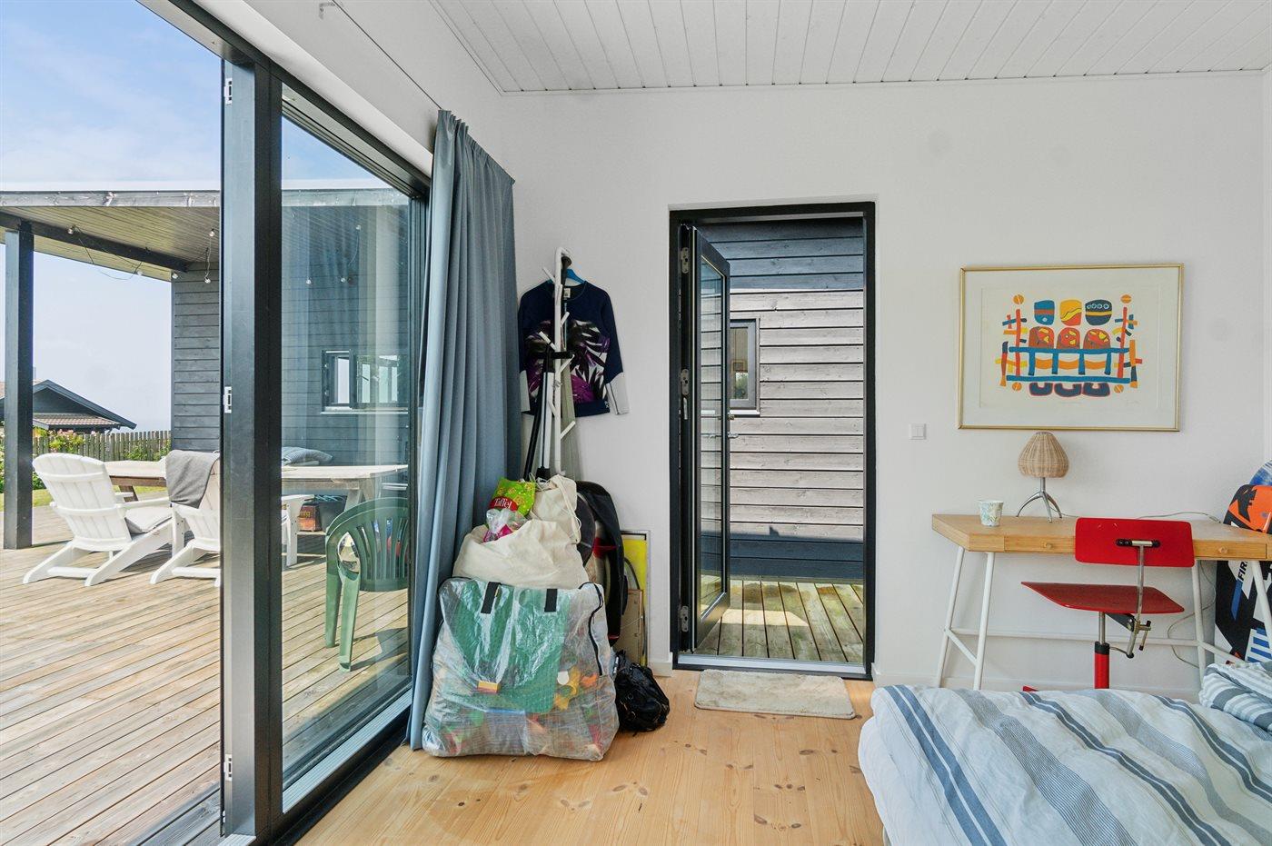 Der er i alt 4 soveværelser. Sovepladserne fordeler sig på: 4 sovepladser i dobbeltsenge. 2 sovepladser i køjeseng. 2 sovepladser i sovesofa (dobbelt). 2 af disse sovepladser befinder sig i et anneks. Derudover er der 1 stk. barneseng.
