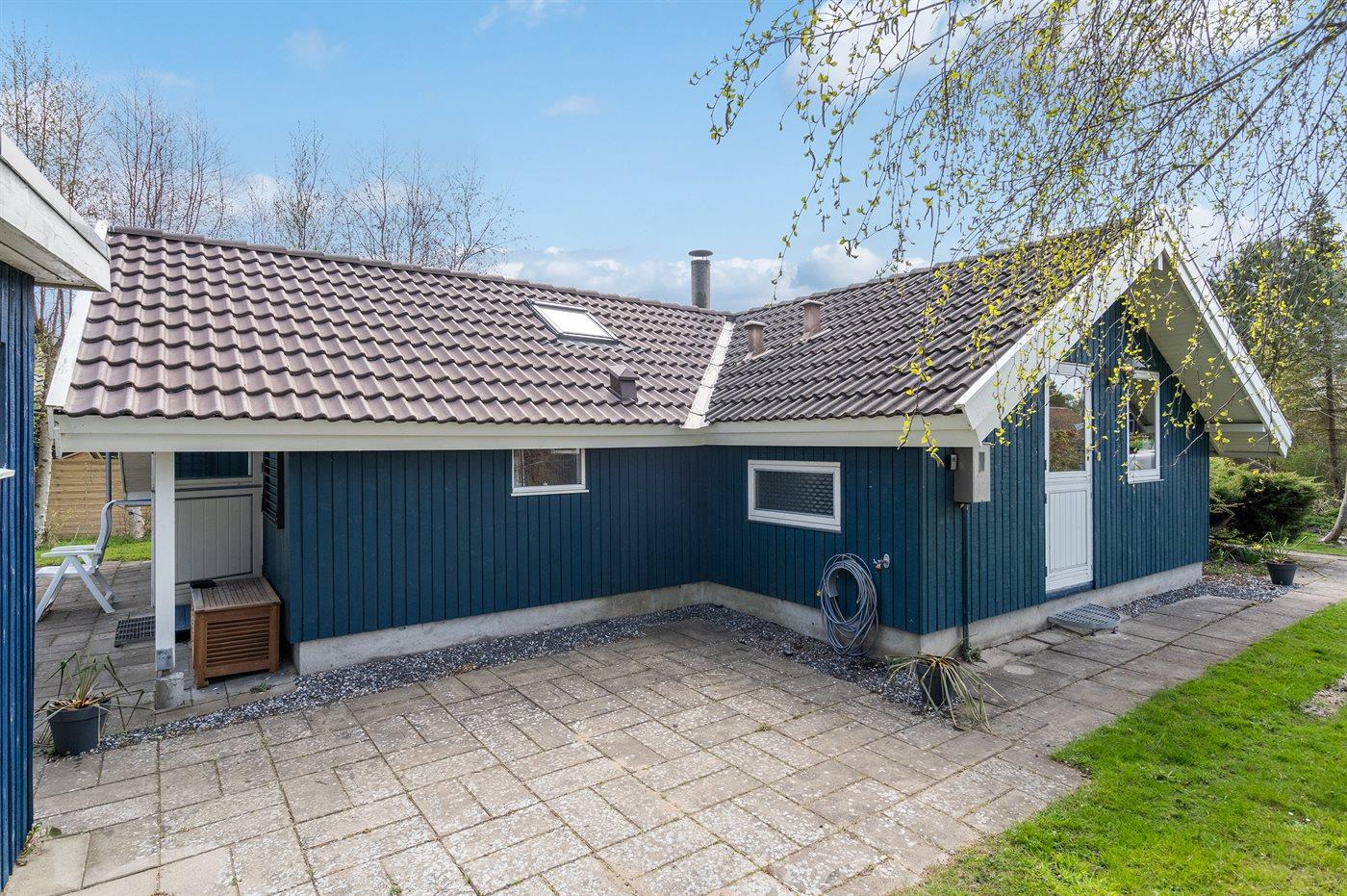 Ferieboligen er beliggende på en 788 m² stor havegrund. Der er 300 m til havet. Der er en badebro i nærheden. Nærmeste forretning er beliggende i en afstand af 4800 m. Der er en golfbane i en afstand af 16500 m. Til ferieboligen hører åbent terrasseareal. Desuden er der overdækket terrasse. Grill til rådighed. Parkering ved ferieboligen.