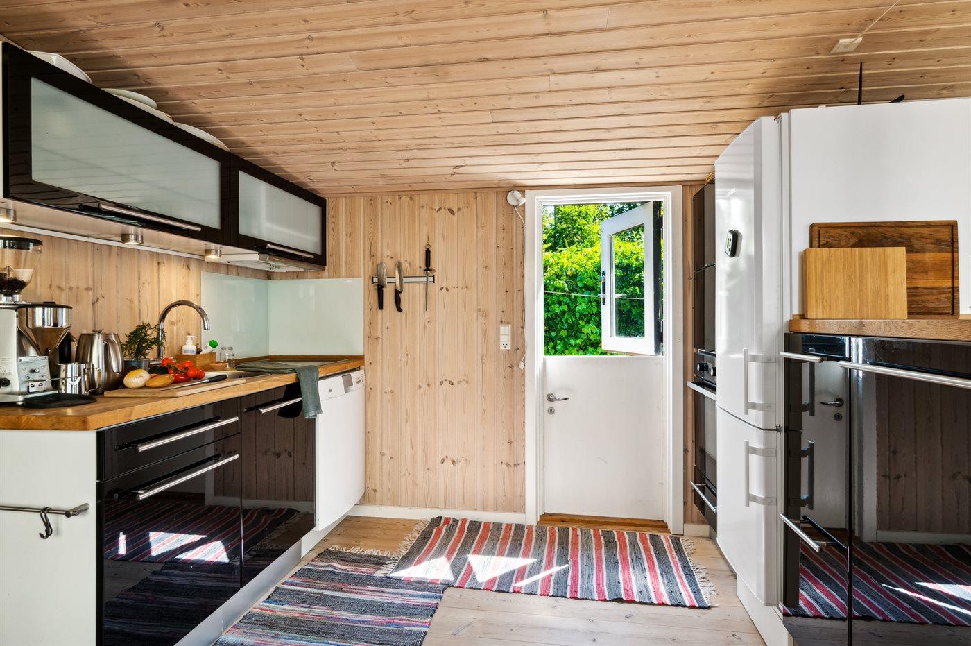Køkkenet er udstyret med 1 køleskab. Der er 4 keramiske kogeplader, varmluftovn samt opvaskemaskine.