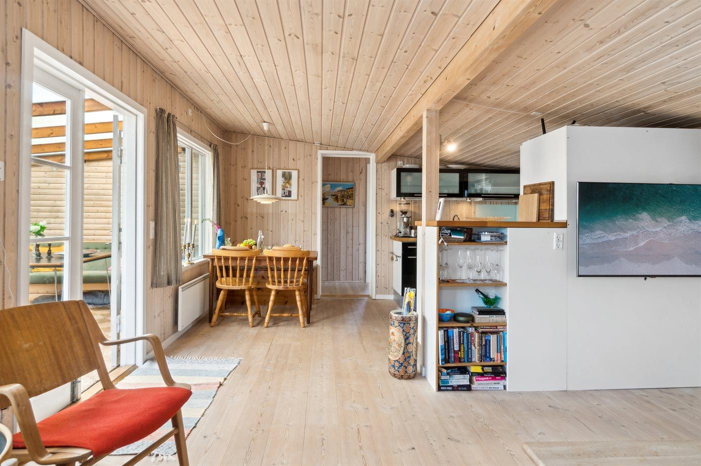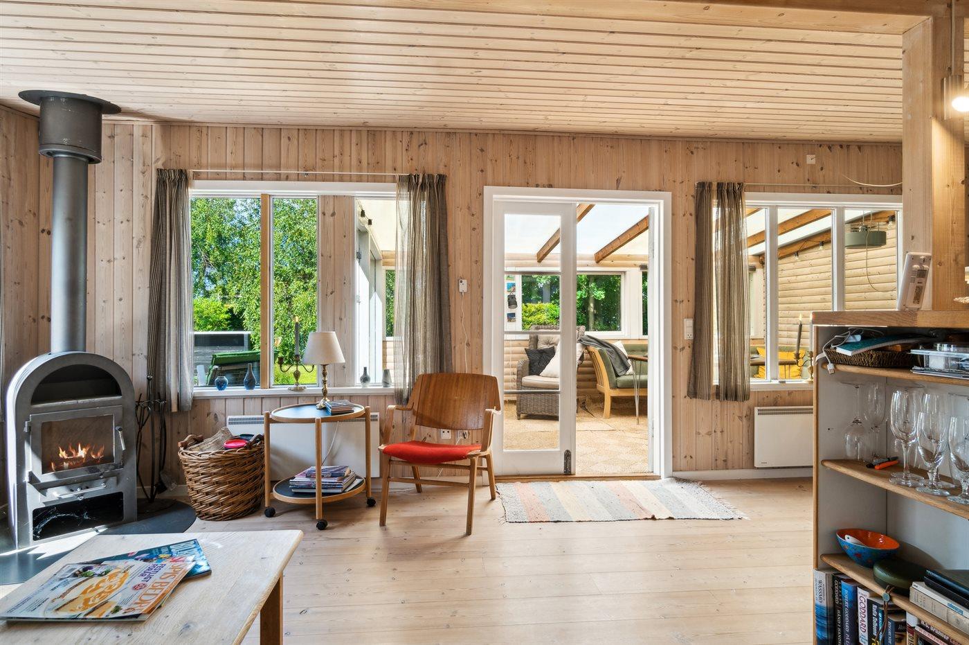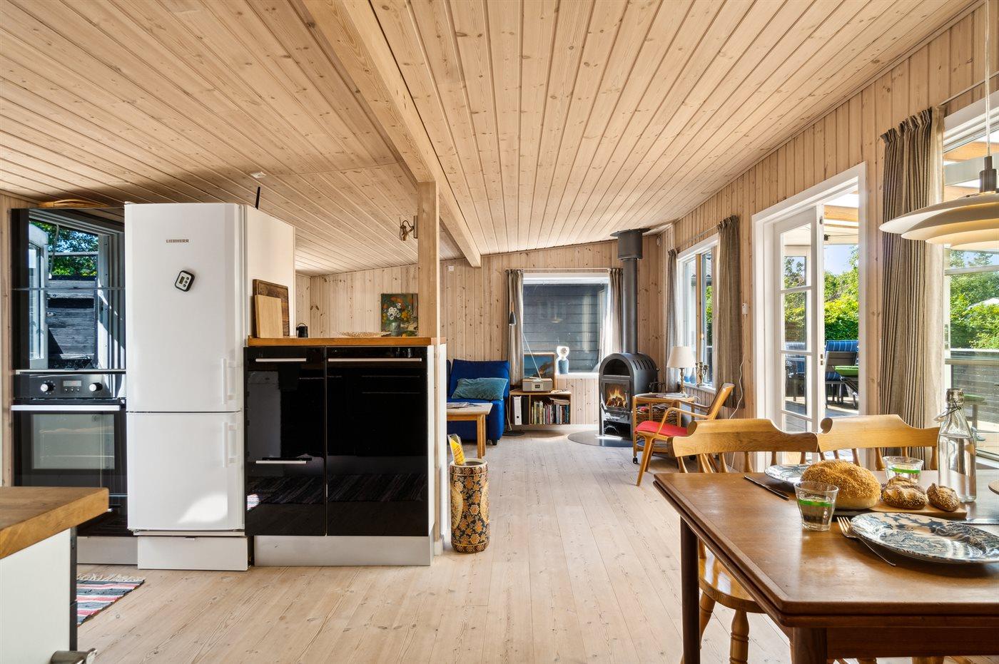 Dette charmerende og hyggelige sommerhus er beliggende i et roligt sommerhusområde i landlige og naturskønne omgivelser og med kun 225 meter til en dejlig børnevenlig og lavvandet sandstrand. I den hyggelige have kan der leges med børnene og de gode terrasser og den dejlige udestue giver god mulighed for hygge og afslapning. Indenfor er stue, spiseplads og køkken ud i et med udgang til udestuen. Der er 2 soveværelser i huset med hver 2 sovepladser samt en dobbelt sovesofa i stuen. Derudover er der 2 sovepladser i annekset. Badeværelset er med bruseniche og gulvvarme. Der er tillige udebruser og vaskemaskine. Huset opvarmes energivenligt med luft-til-luft varmepumpe og der er brændeovn til de hyggelige stunder.
