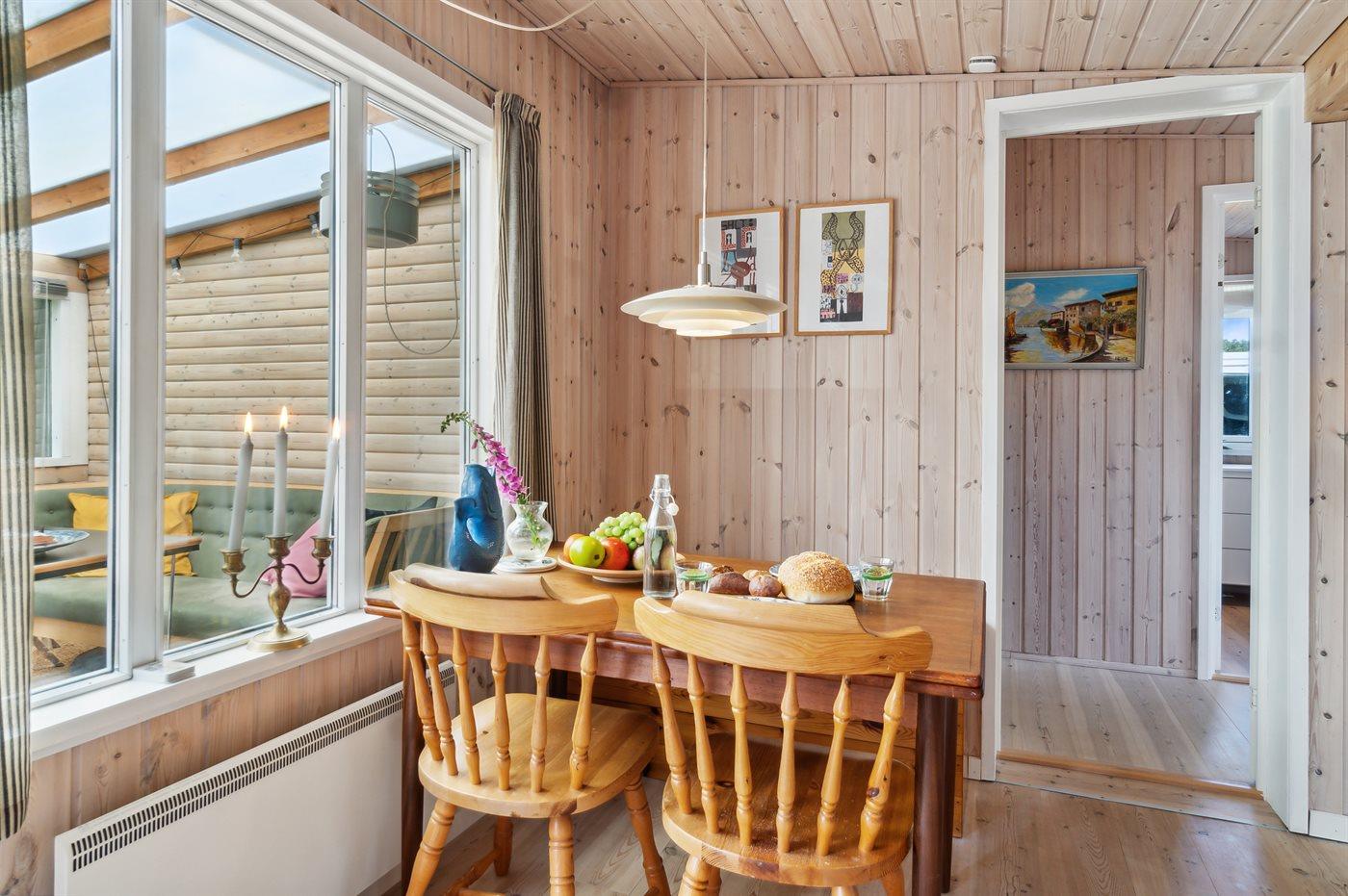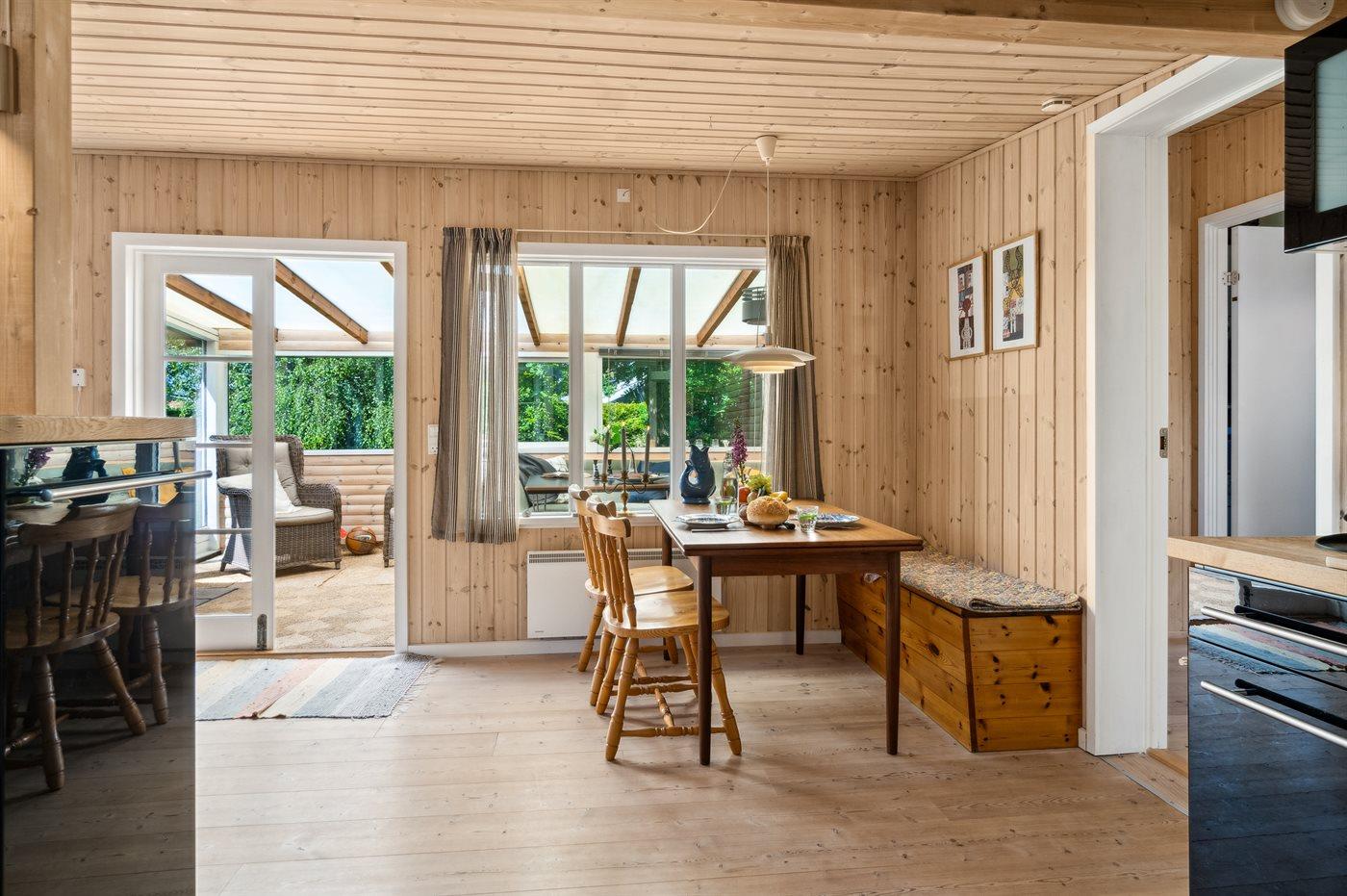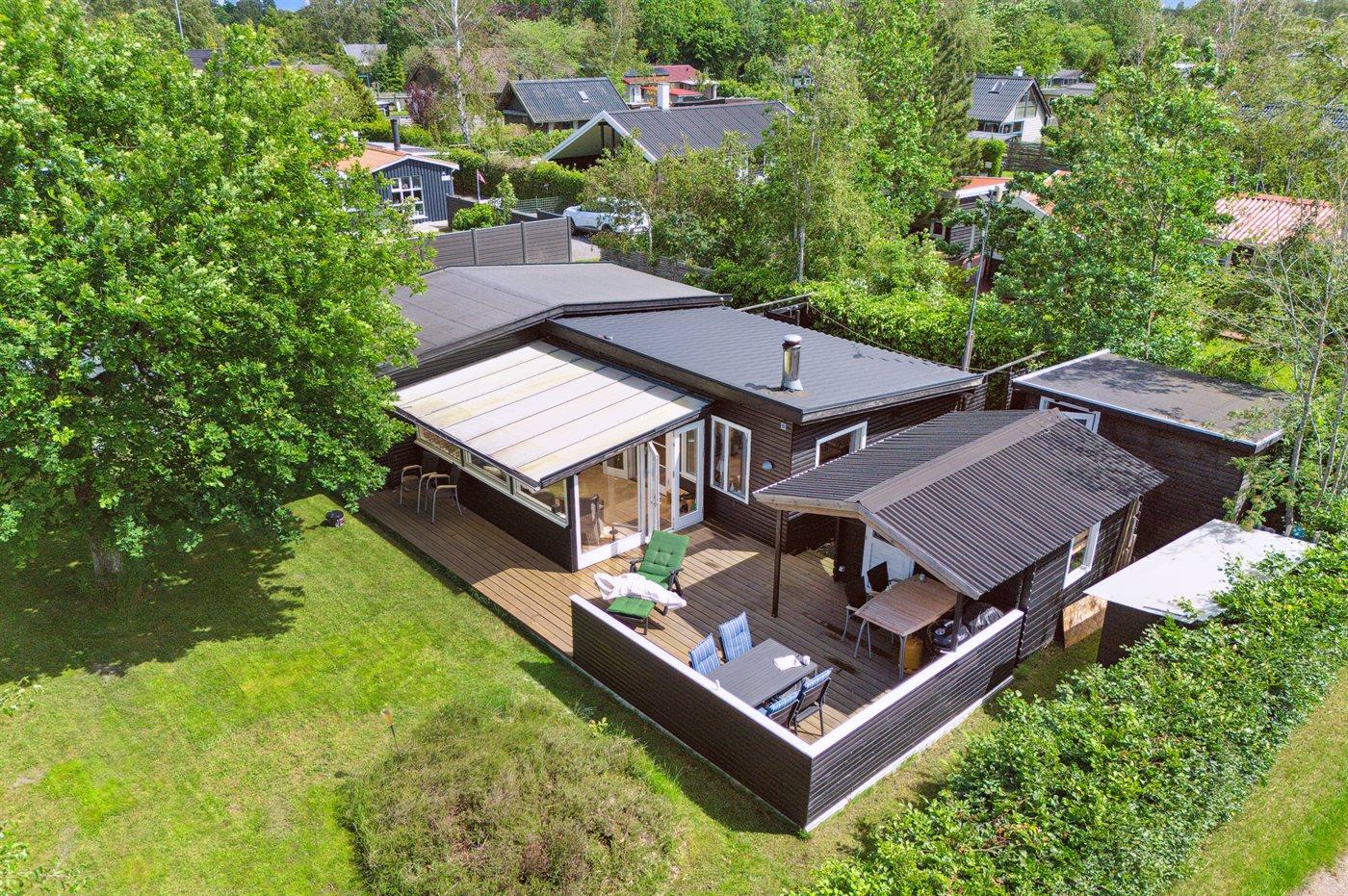 Dette charmerende og hyggelige sommerhus er beliggende i et roligt sommerhusområde i landlige og naturskønne omgivelser og med kun 225 meter til en dejlig børnevenlig og lavvandet sandstrand. I den hyggelige have kan der leges med børnene og de gode terrasser og den dejlige udestue giver god mulighed for hygge og afslapning. Indenfor er stue, spiseplads og køkken ud i et med udgang til udestuen. Der er 2 soveværelser i huset med hver 2 sovepladser samt en dobbelt sovesofa i stuen. Derudover er der 2 sovepladser i annekset. Badeværelset er med bruseniche og gulvvarme. Der er tillige udebruser og vaskemaskine. Huset opvarmes energivenligt med luft-til-luft varmepumpe og der er brændeovn til de hyggelige stunder.