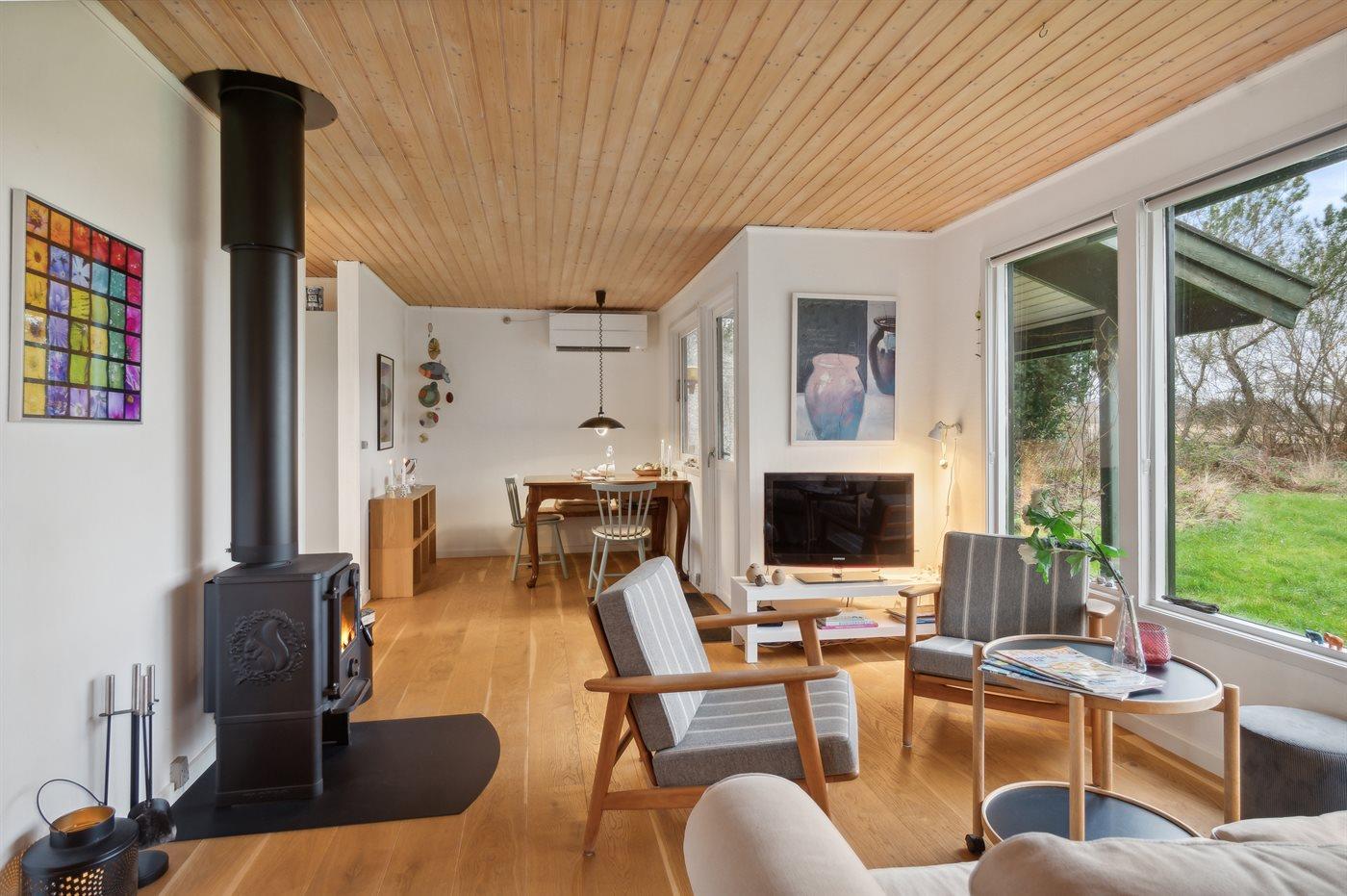 Huset opvarmes energivenligt med luft-til-luft varmepumpe og der er brændeovn til de hyggelige stunder.
