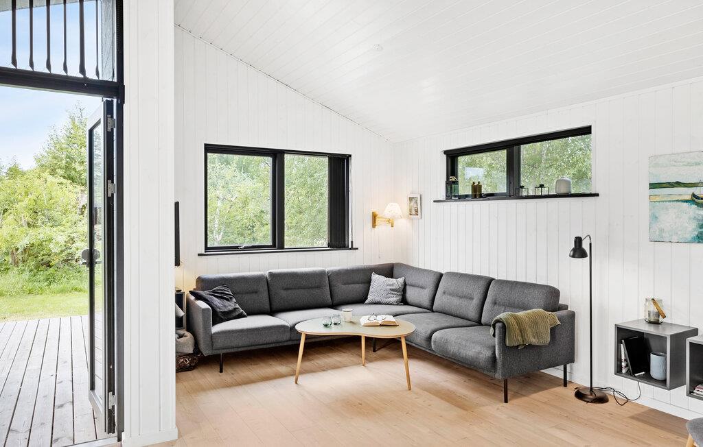 Velkommen til dette lækre hus, der ligger i fredelige, grønne omgivelser i gåafstand fra Bjerge Nordstrand, og hvor der venter jer en yderst komfortabel base på ferien. Udover hovedhuset er der sovepladser i annekset, så I kan rejse som en lidt større flok uden at skulle give køb på lidt privatliv, når behovet måtte opstå. Huset er virkelig flot indrettet med et flot samspil mellem de lyse træpaneler og de sorte indretningselementer, der giver det indre et elegant og stilrent udtryk. Interiøret får dejlige lysindfald gennem de store vinduespartier og en skøn udsigt til haven. Køkkenet er rummeligt og fuldt udstyret, så tag jer god tid til madlavningen, inden der dækkes op til en herlig middag med udsigt til det grønne. Hvis vejret bider lidt fra sig, er det bare at tænde op i brændeovnen, der giver varme og det helt rette, knitrende lydtapet til aftenhyggen i sofaen.