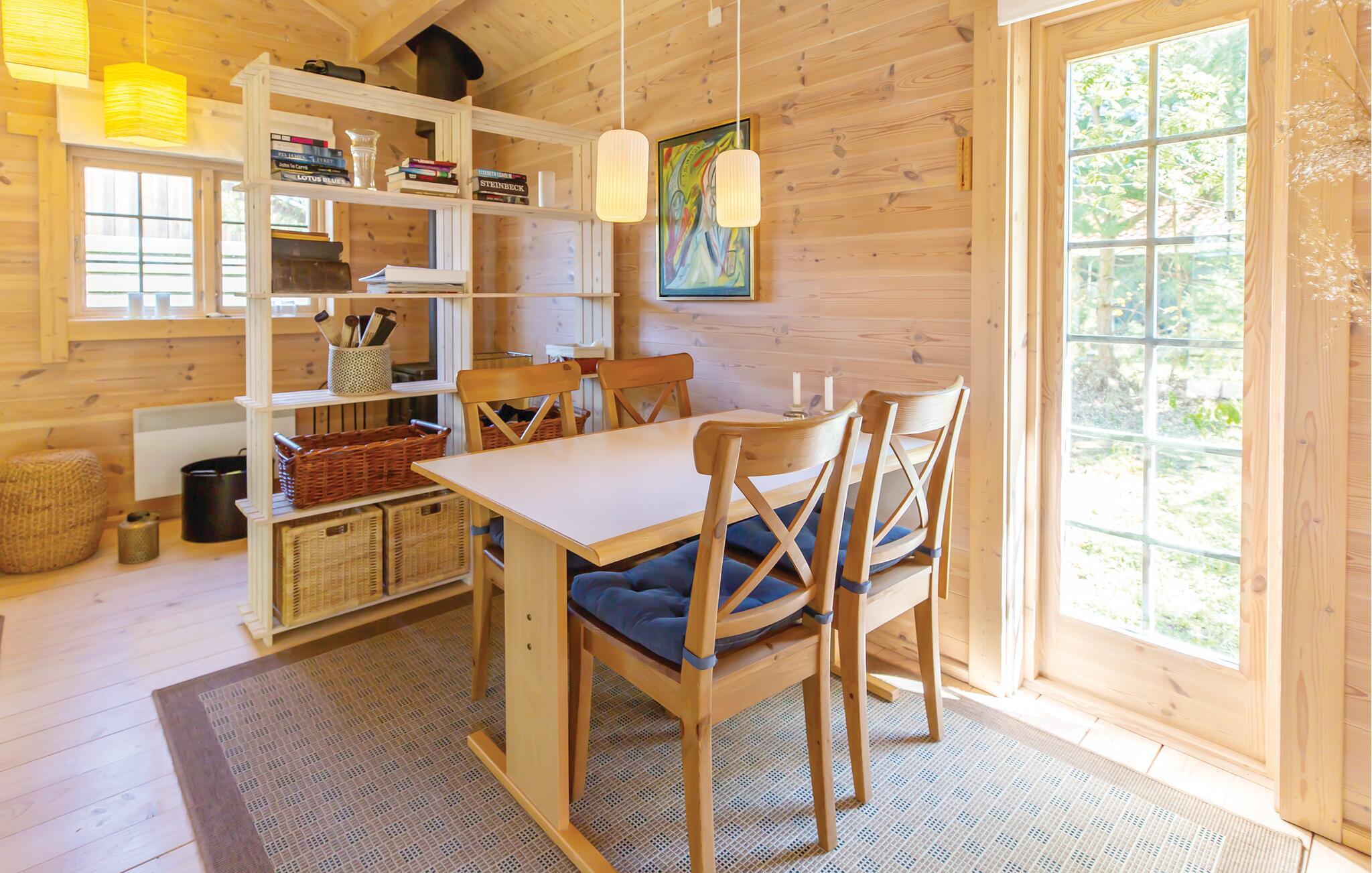 Huset byder jer velkommen i en hyggelig stue med brændeovn i forbindelse med åbent køkken. Fra stuen er der udgang til en stor, skøn delvist overdækket træterrasse, hvor I ugeneret kan nyde solen og høre havets brusen. Fra terrassen er der adgang til et dejligt badeværelse med brusebad. Der er to sovepladser i stuen og to i annekset. Hvis vejret inviterer til indendørs hygge, er underholdningen sikret med bl.a. internet og TV med danske, tyske, norske og svenske kanaler.